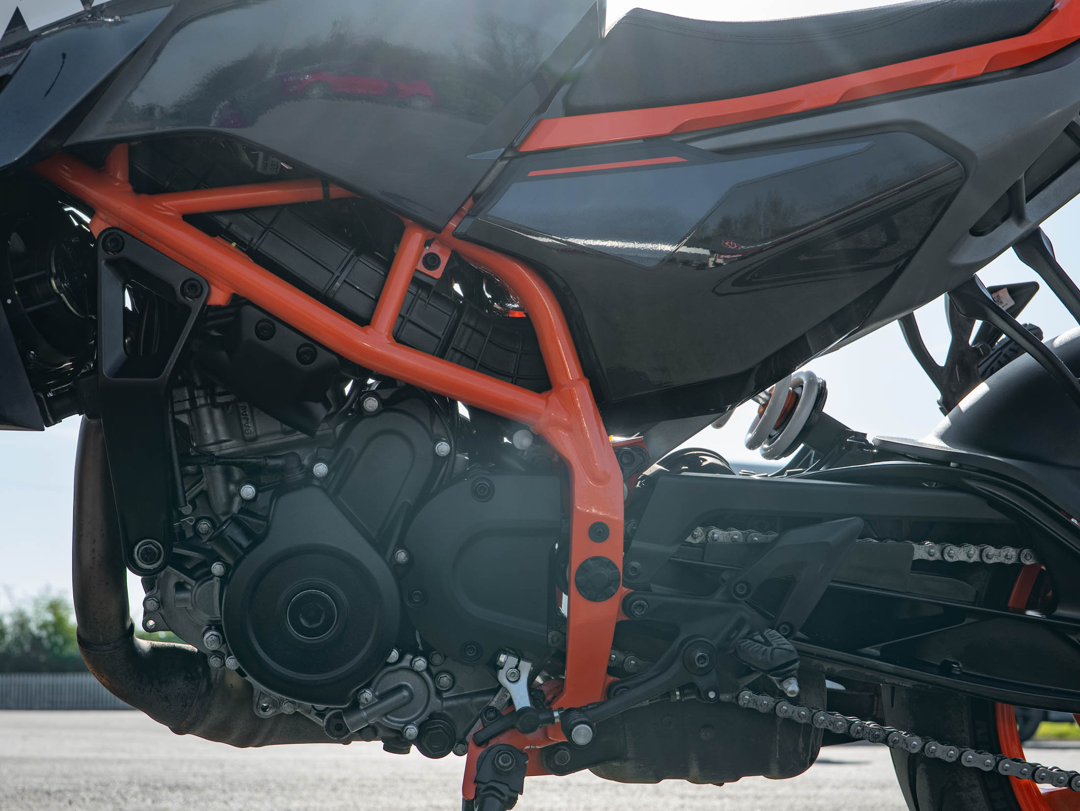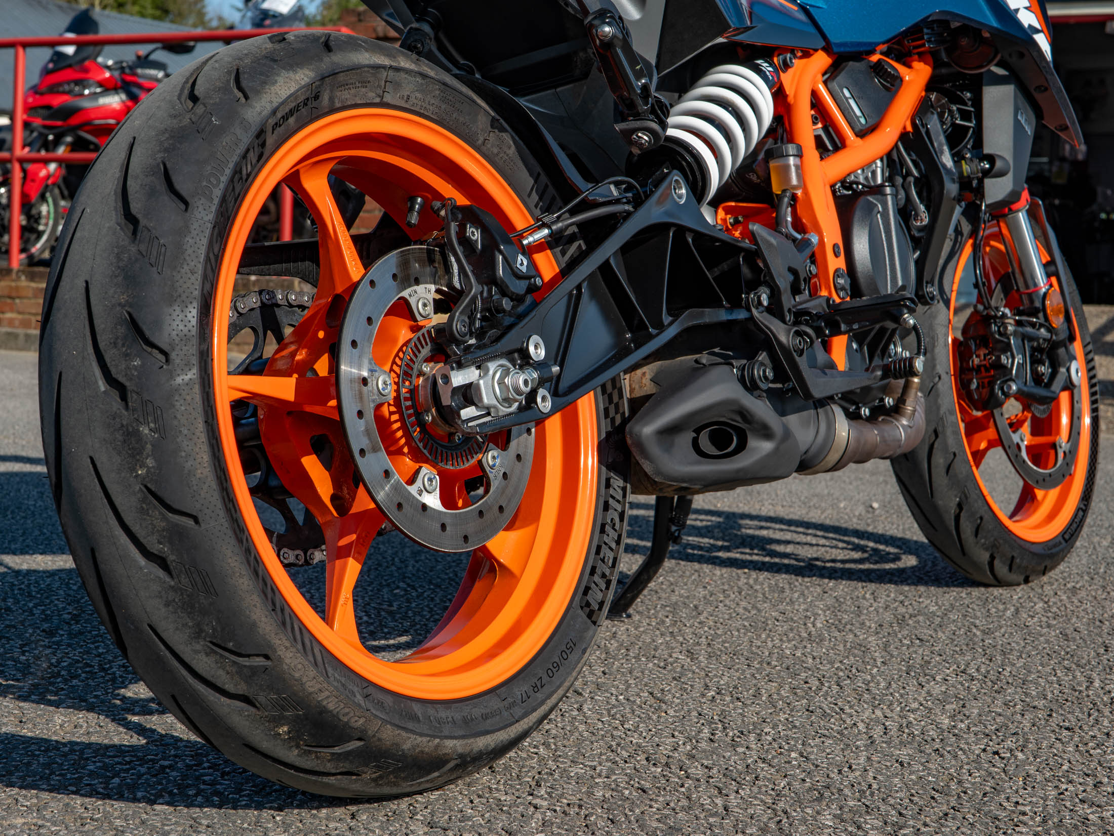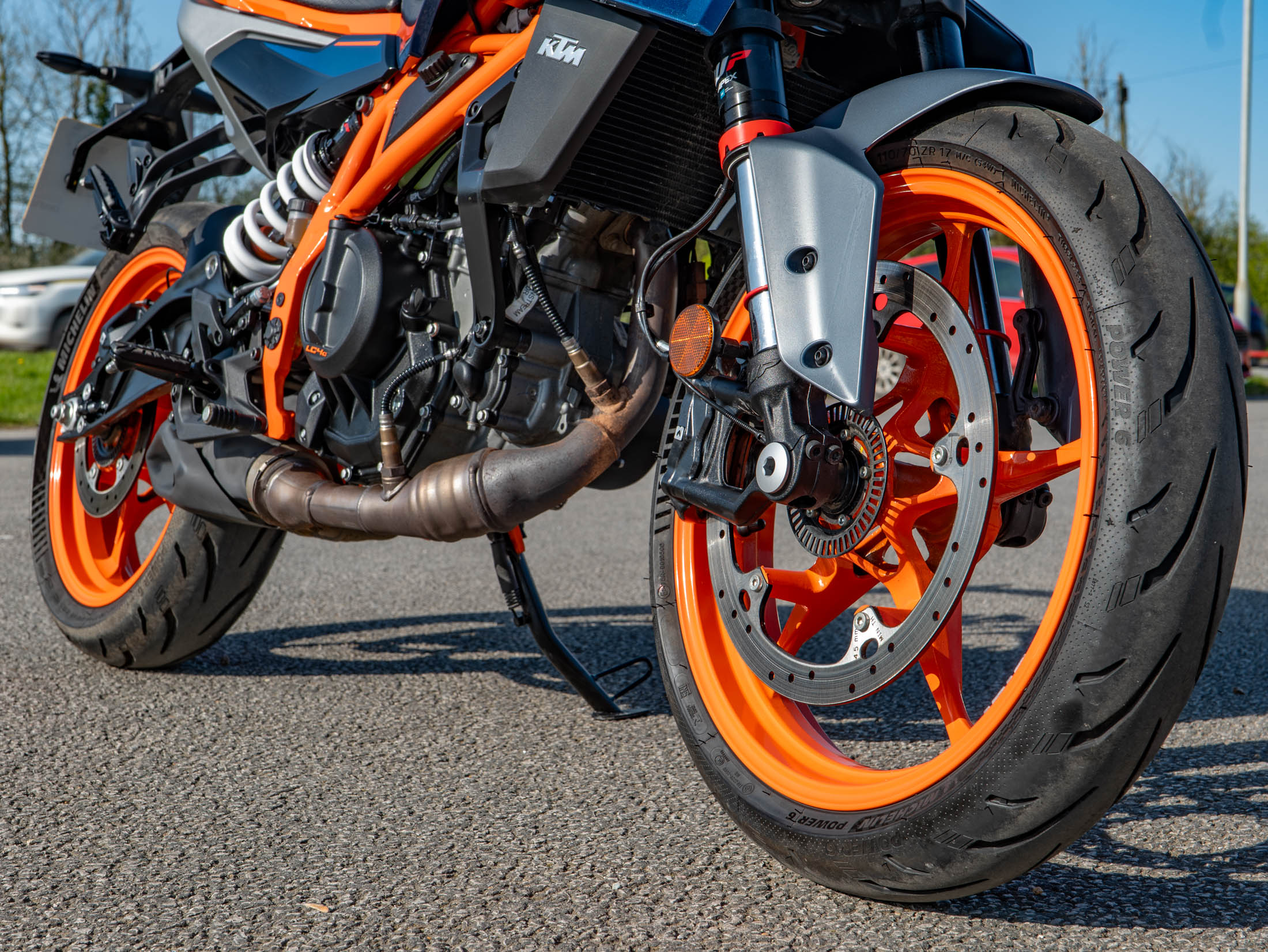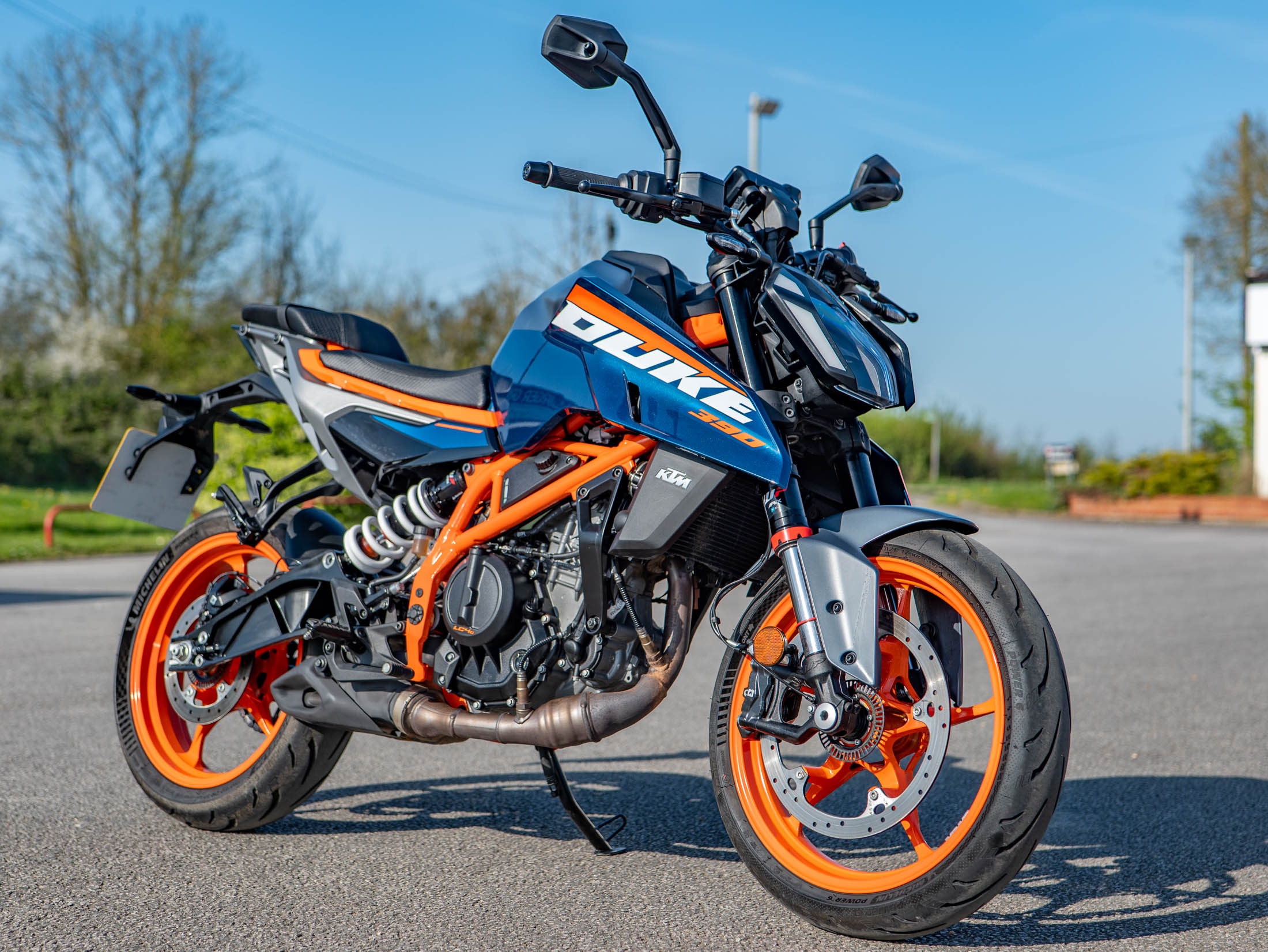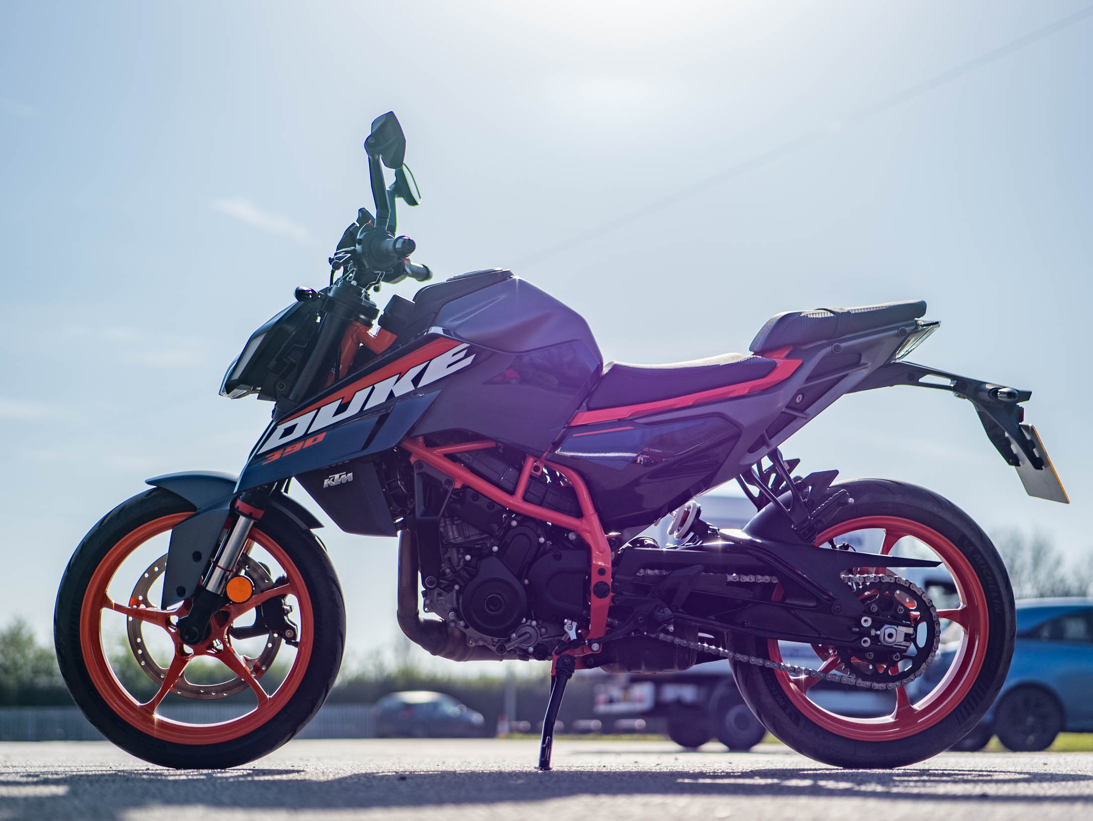 The heart of this 2024 model is the redesigned 399cc LC4c single-cylinder engine, delivering a punchy 44 hp. KTM has increased the displacement for this generation to provide even more usable torque and smoother power delivery while remaining fully A2 licence compliant. The 44 hp is paired with a feather-light 165 kg wet weight and an all-new chassis featuring a die-cast aluminium subframe, making it one of the most agile and responsive bikes in its class.