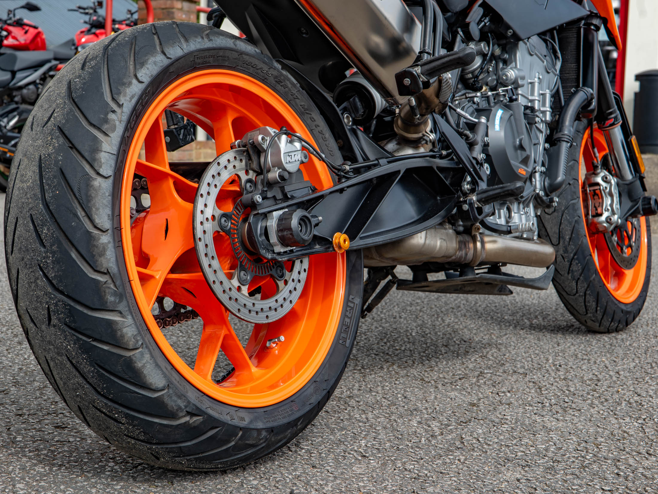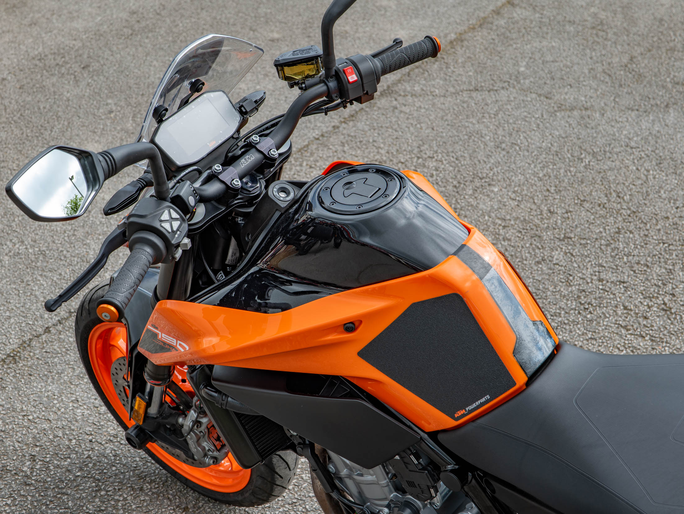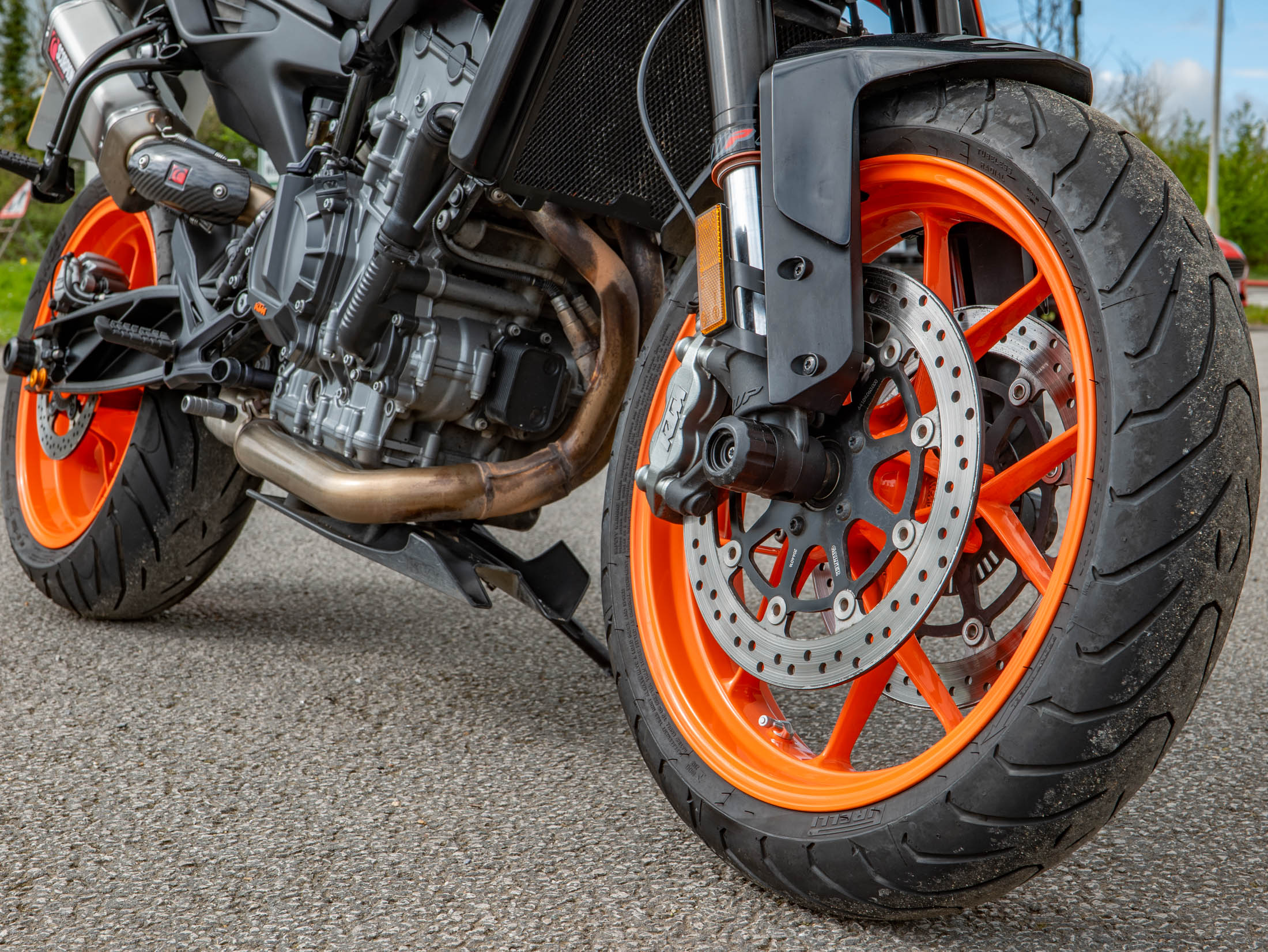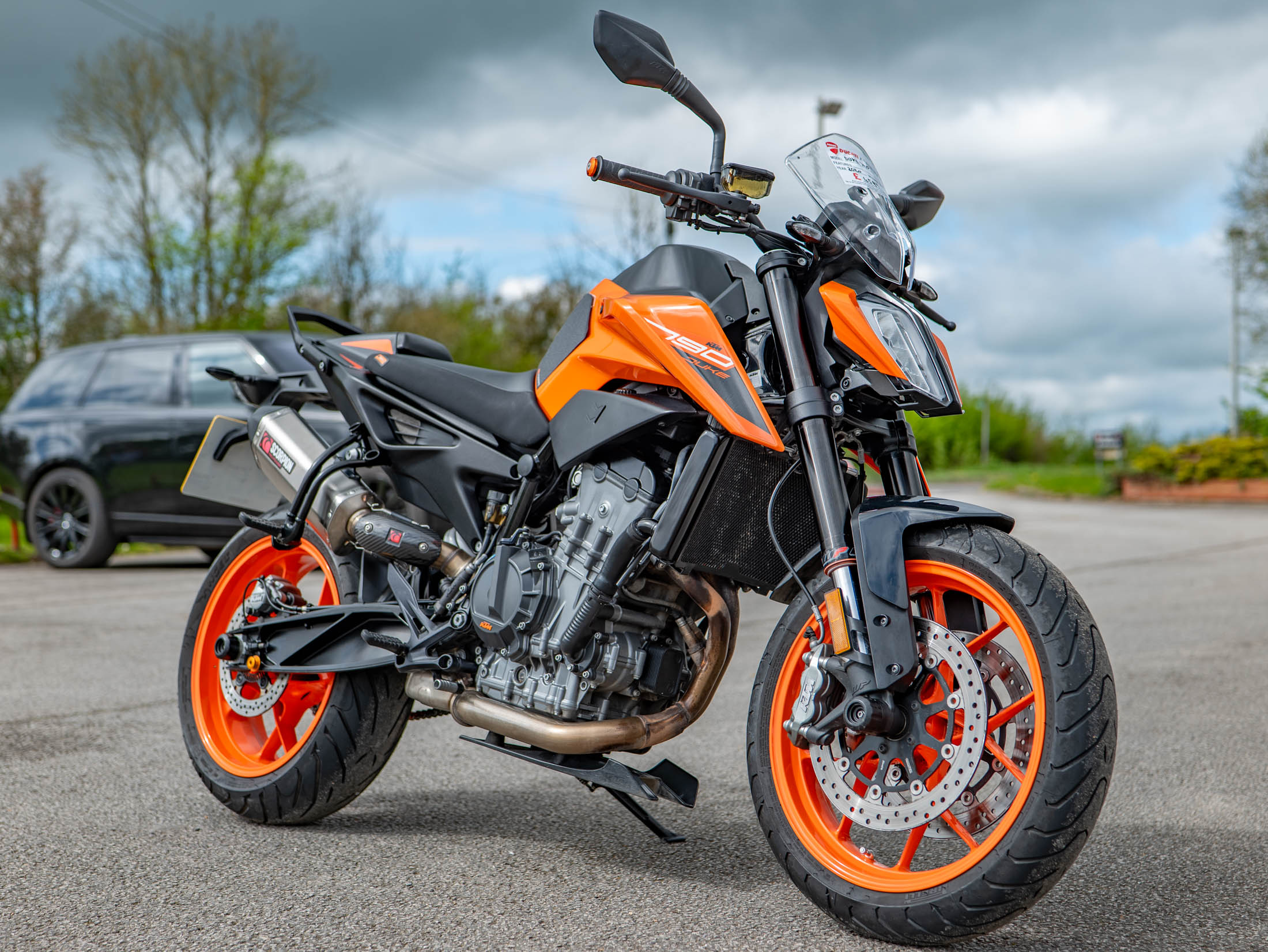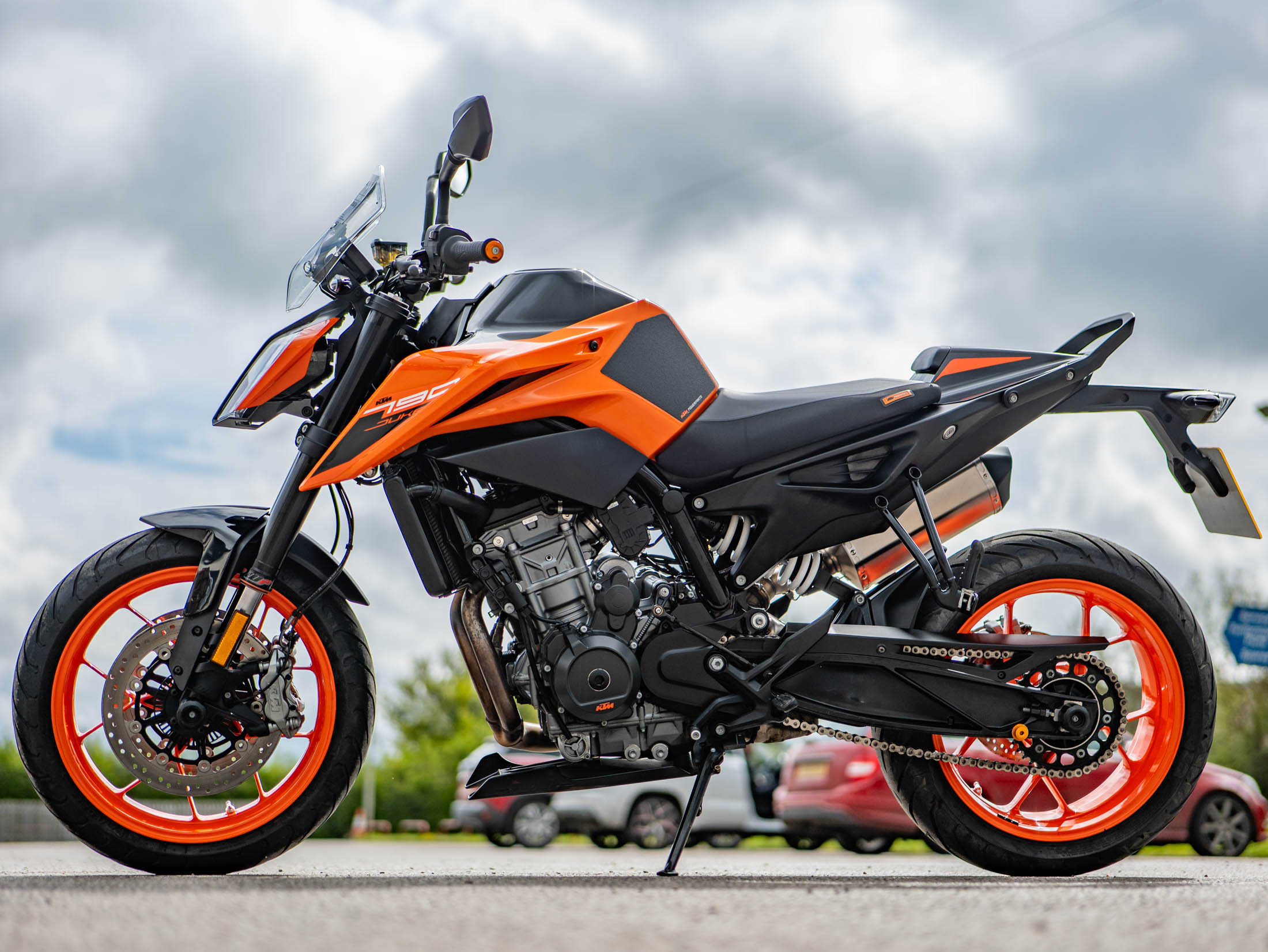 Riding the 790 Duke is an exercise in agility and control, aided by a factory-fitted WP steering damper and a bi-directional Quickshifter+ for seamless gear changes. The advanced electronics package is industry-leading for this model year, featuring lean-sensitive traction control, multiple riding modes, and a dedicated launch control system. For added rider comfort, this example has been fitted with heated grips and a small fly screen to deflect wind at higher speeds.
