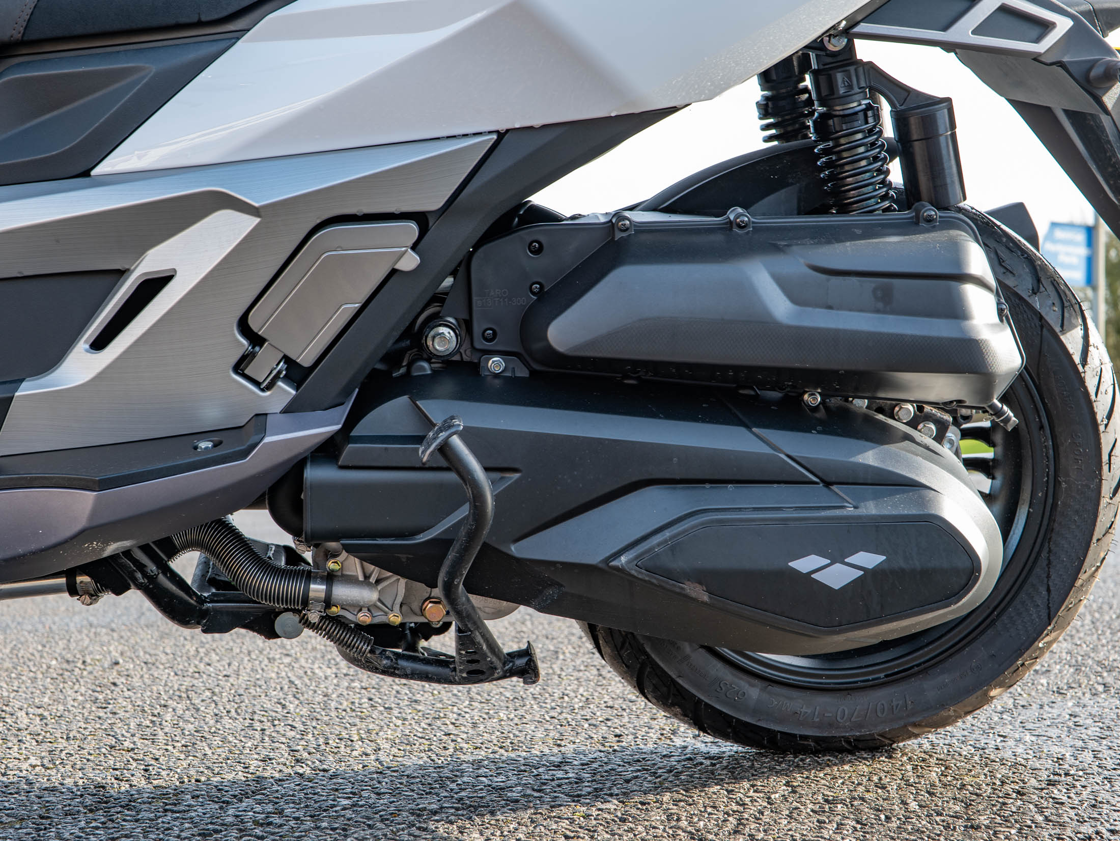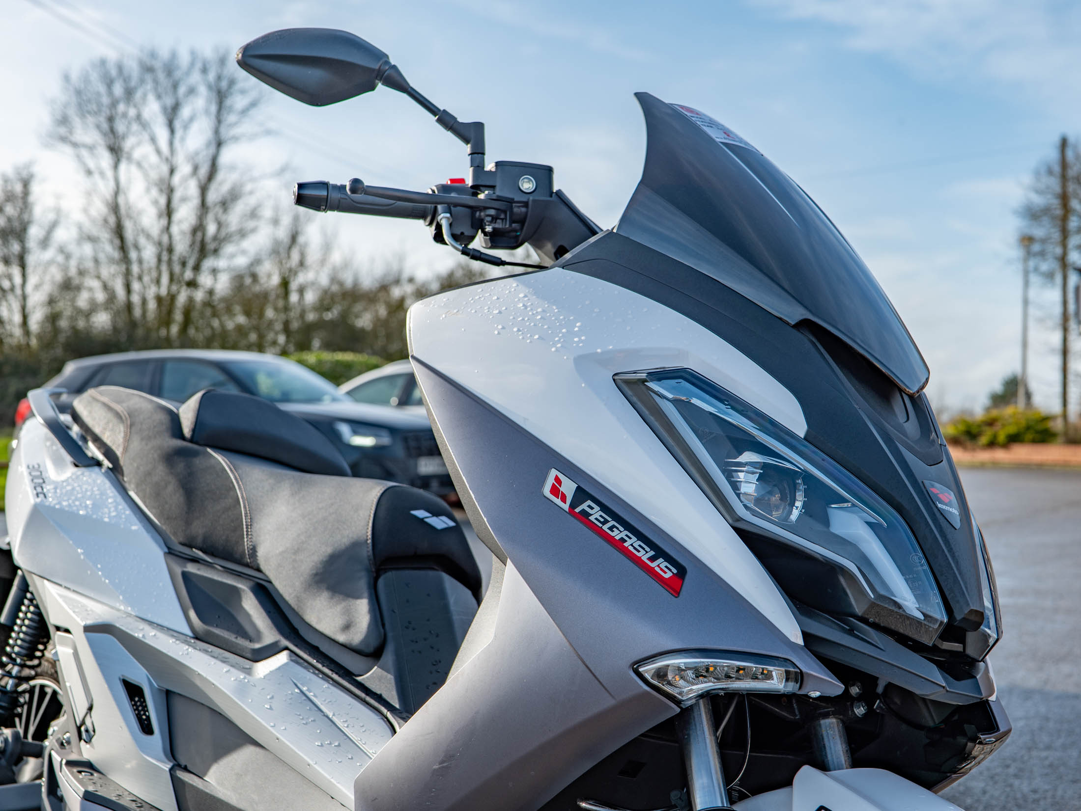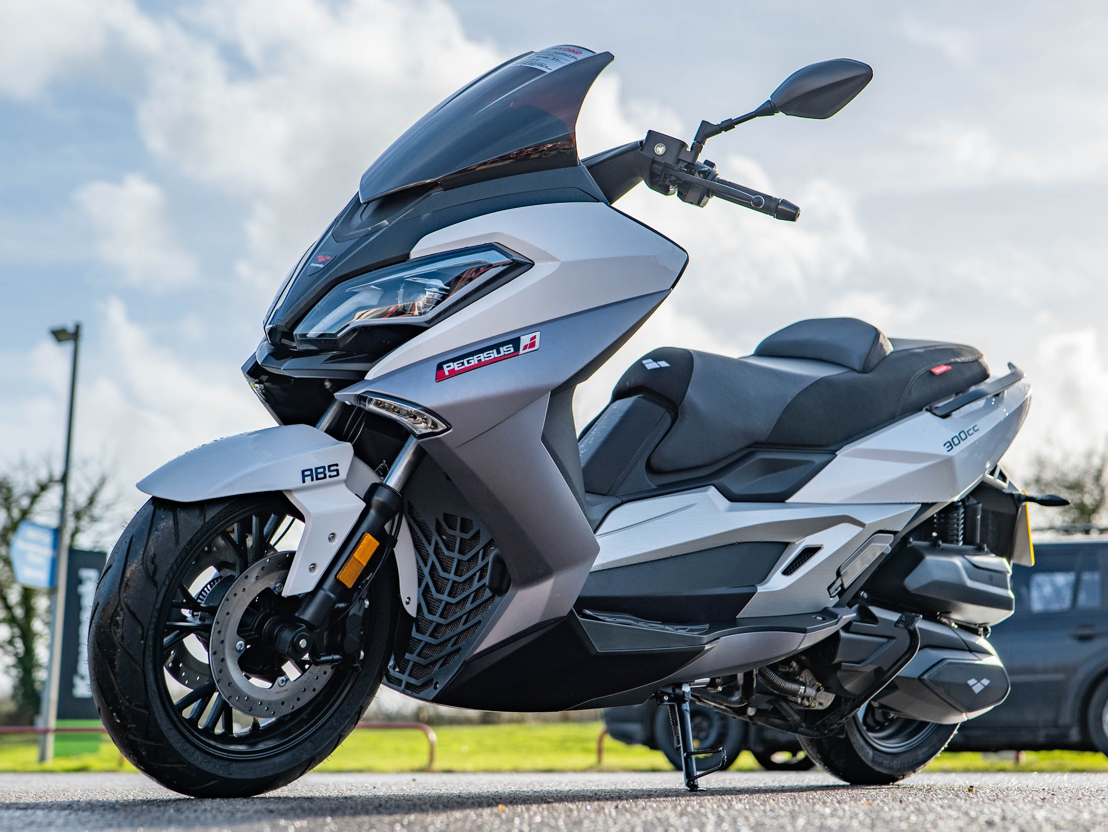 Riding the Pegasus 300 is a relaxed and smooth experience that makes light work of both congested city centres and open A-roads. The 276cc liquid-cooled engine produces a punchy 26 hp, providing enough acceleration to pull away from traffic with ease and reach an indicated top speed of around 78 mph. The automatic "Twist and Go" CVT transmission eliminates the need for gear changes, allowing you to focus entirely on the road ahead. Its long wheelbase and 15-inch front wheel offer stability at higher speeds, while the well-balanced chassis ensures it remains nimble enough for filtering through stationary traffic during peak hours.