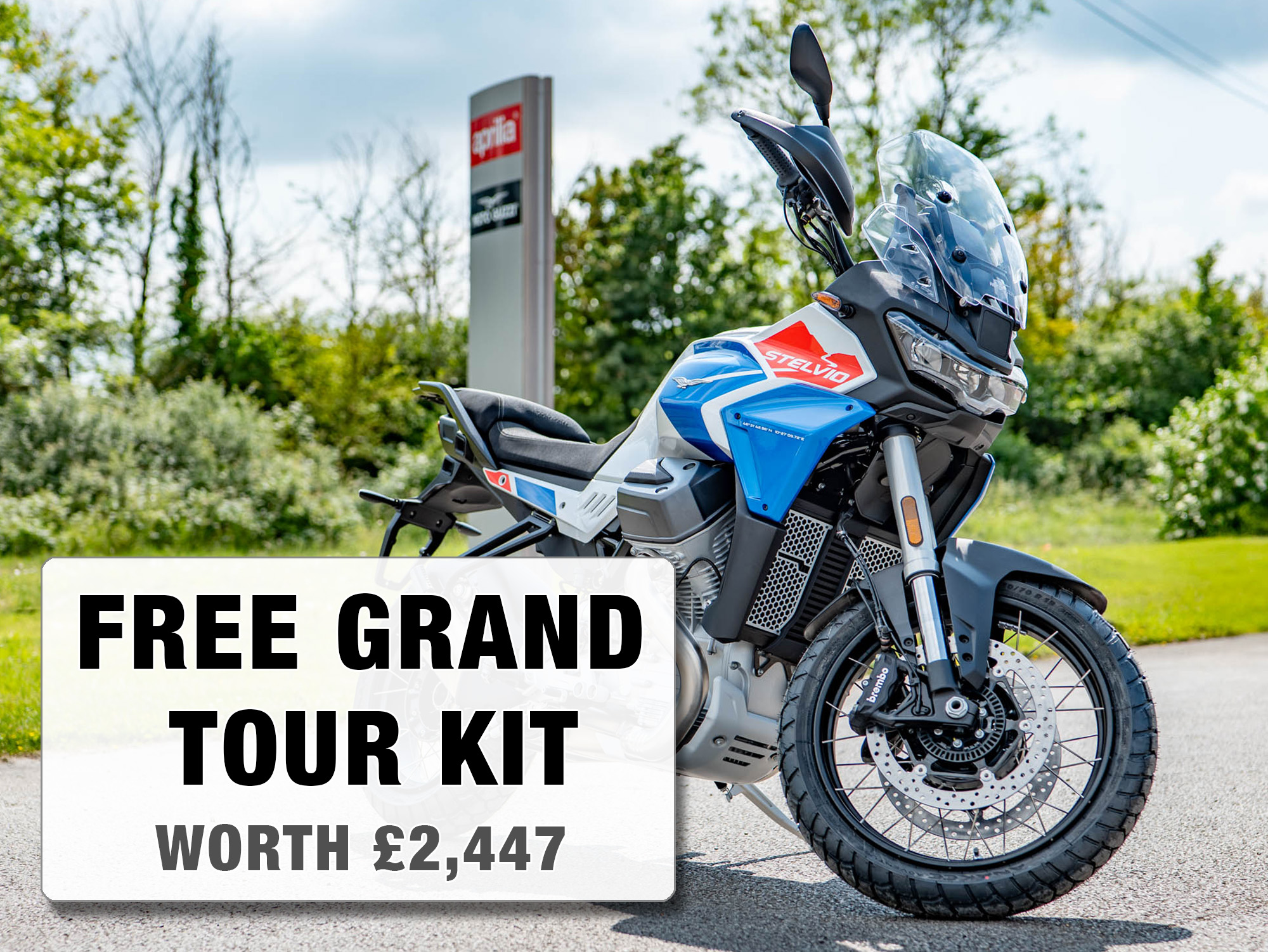 Including a FREE Grand Tour Kit worth £2,447; Topbox with back rest, Panniers, Centre Stand, Top Box Mounting Plate, Engine Protection, Quickshifter and LED Fog Lights.