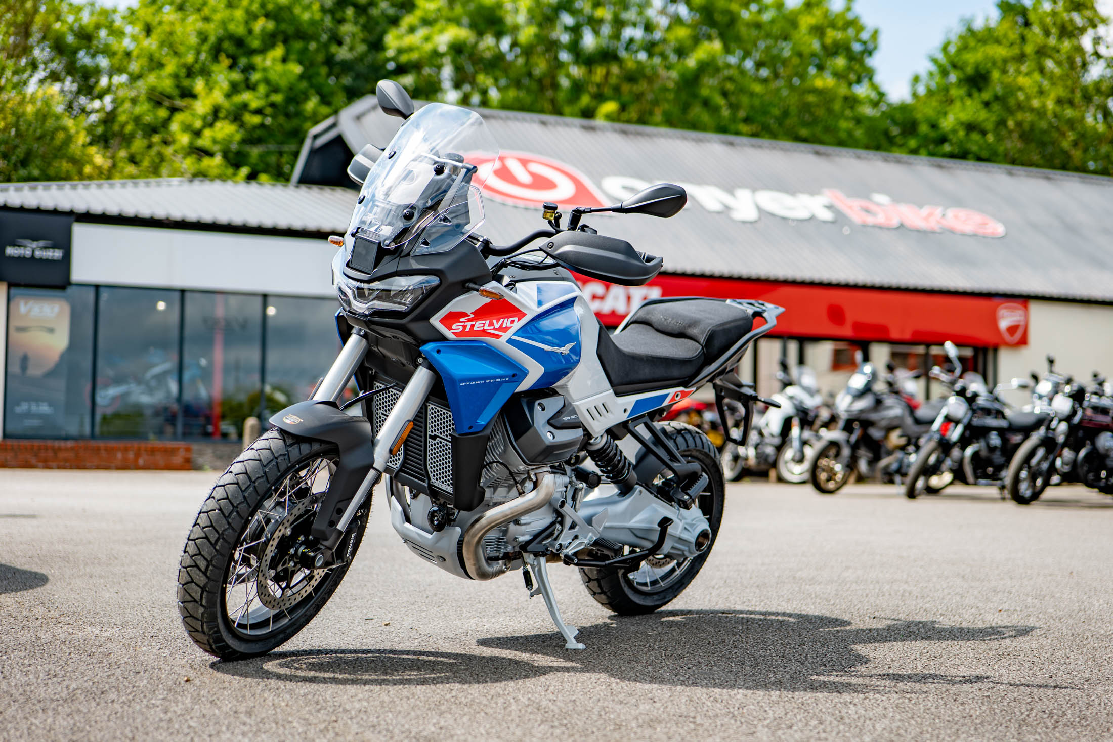 A monumental opportunity has arrived at On Yer Bike / Moto Guzzi Aylesbury with this 2025 Moto Guzzi Stelvio Duecento Tributo. This is a highly exclusive, pre-registered unit showing only delivery mileage. As a VAT Qualifying motorcycle, it offers a rare, tax-efficient opening to own a genuine collector’s piece at a significant saving. This limited edition celebrates the 200th anniversary of the Stelvio Pass, with this specific machine being Number 0222 of 2758—a figure representing every metre of the pass’s peak elevation. The unique production number is laser-etched onto the handlebar riser, certifying its place in this prestigious global run.