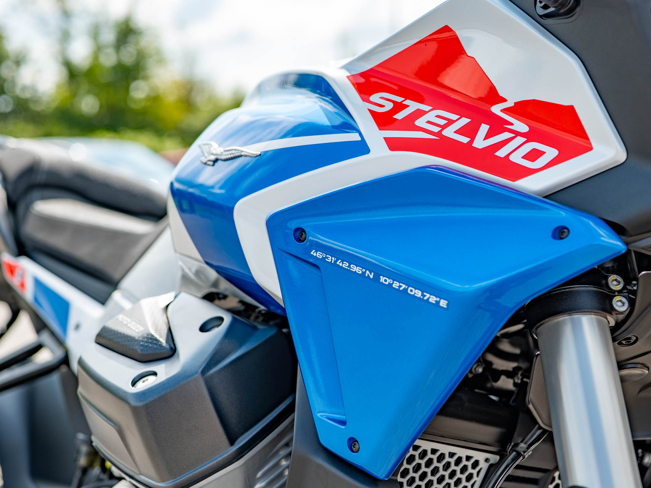 The heart of this Italian explorer is the sophisticated 1,042cc liquid-cooled V-twin, delivering a muscular 115 hp through a smooth, maintenance-free shaft drive. The "Tributo" is instantly set apart by its "Snow White" livery, accented with blue and red graphics inspired by technical mountain gear. The design intricately features the geographical coordinates of the pass and a map of its 48 legendary hairpin turns, ensuring the 115 hp is delivered with unmatched style and presence.
