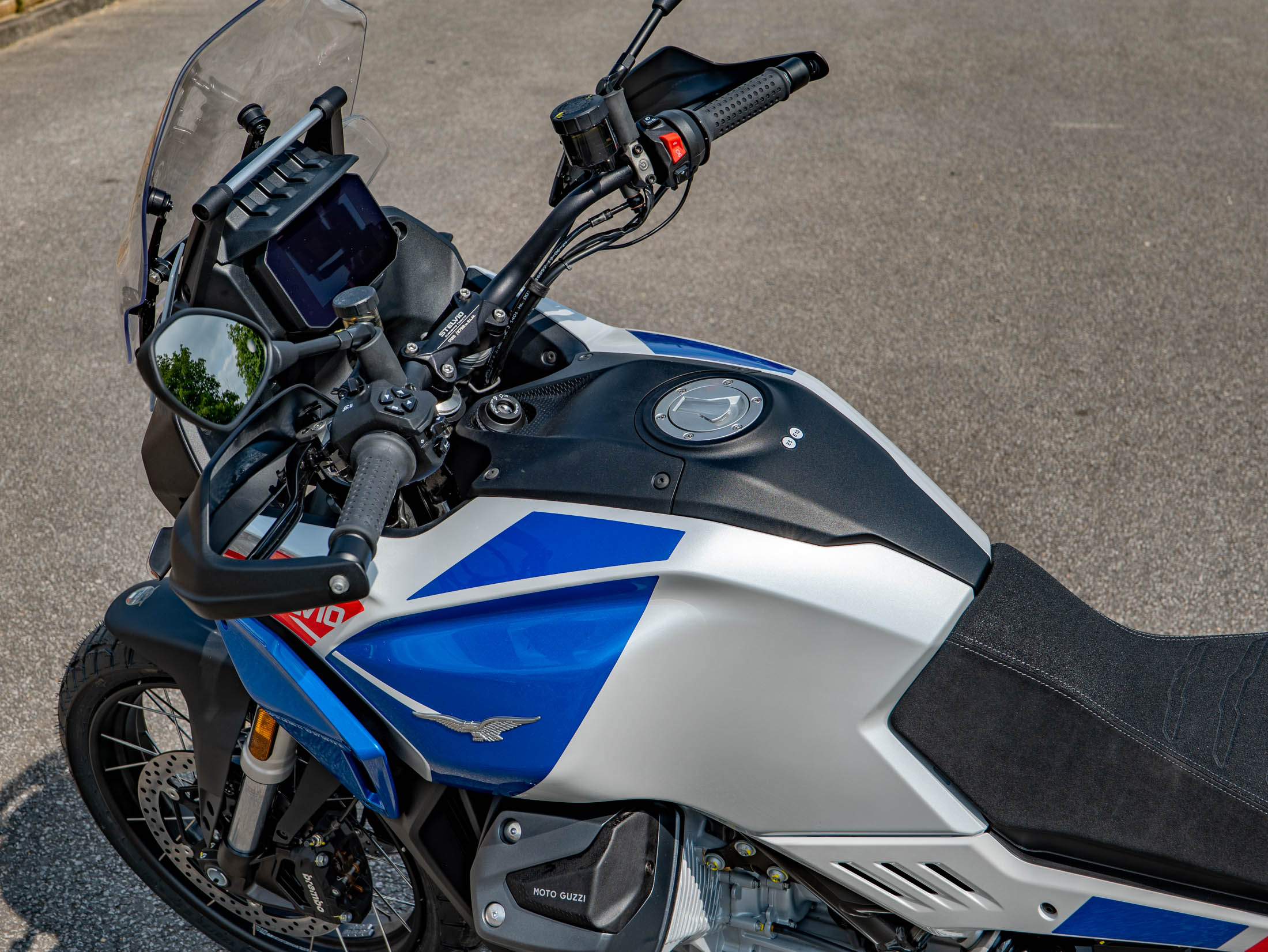 Technology is at the forefront of this flagship model. It features the Piaggio Fast Forward (PFF) 4D Radar platform, providing Forward Collision Warning, Blind Spot Information, and Lane Change Assist. This machine comes factory-loaded with a premium electronics suite, including multiple riding modes, cornering ABS, and traction control. It also benefits from factory-fitted heated rider and passenger seats, heated grips, a bi-directional quickshifter, and the Moto Guzzi MIA multimedia platform.