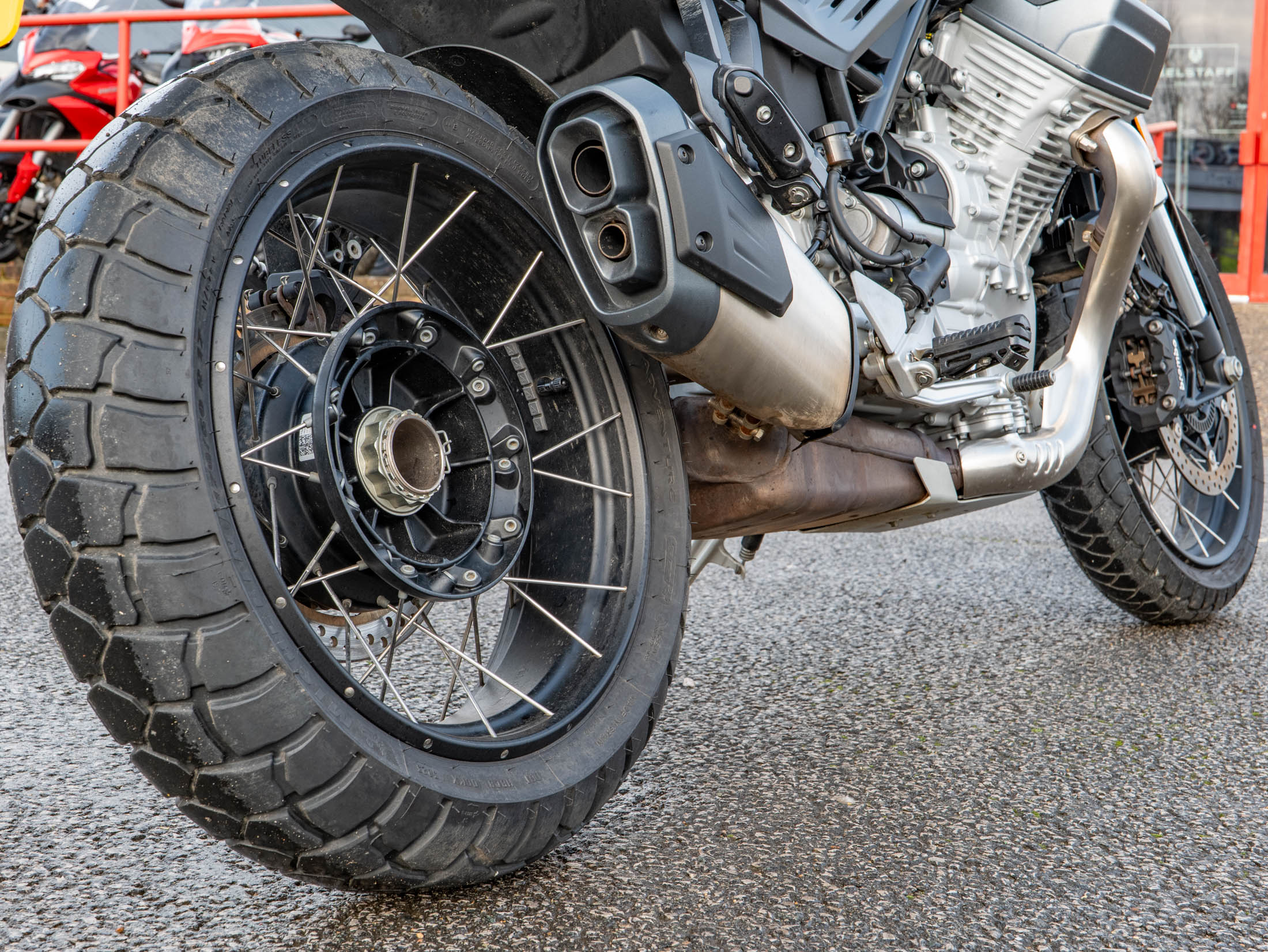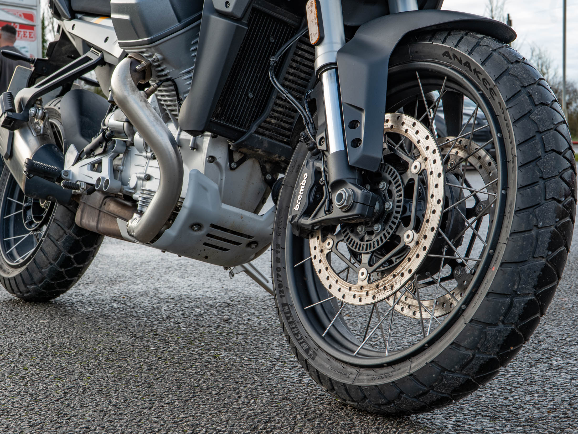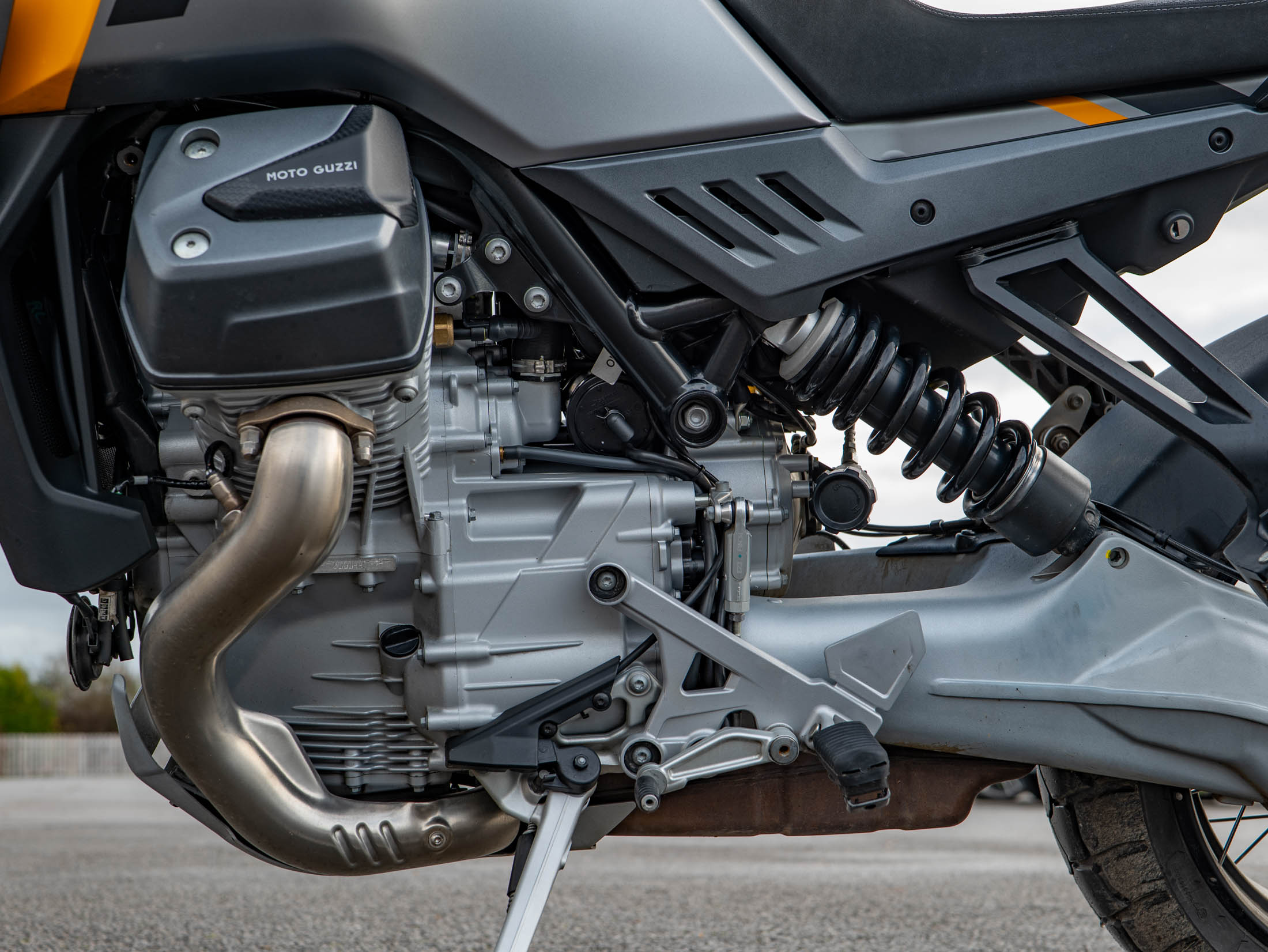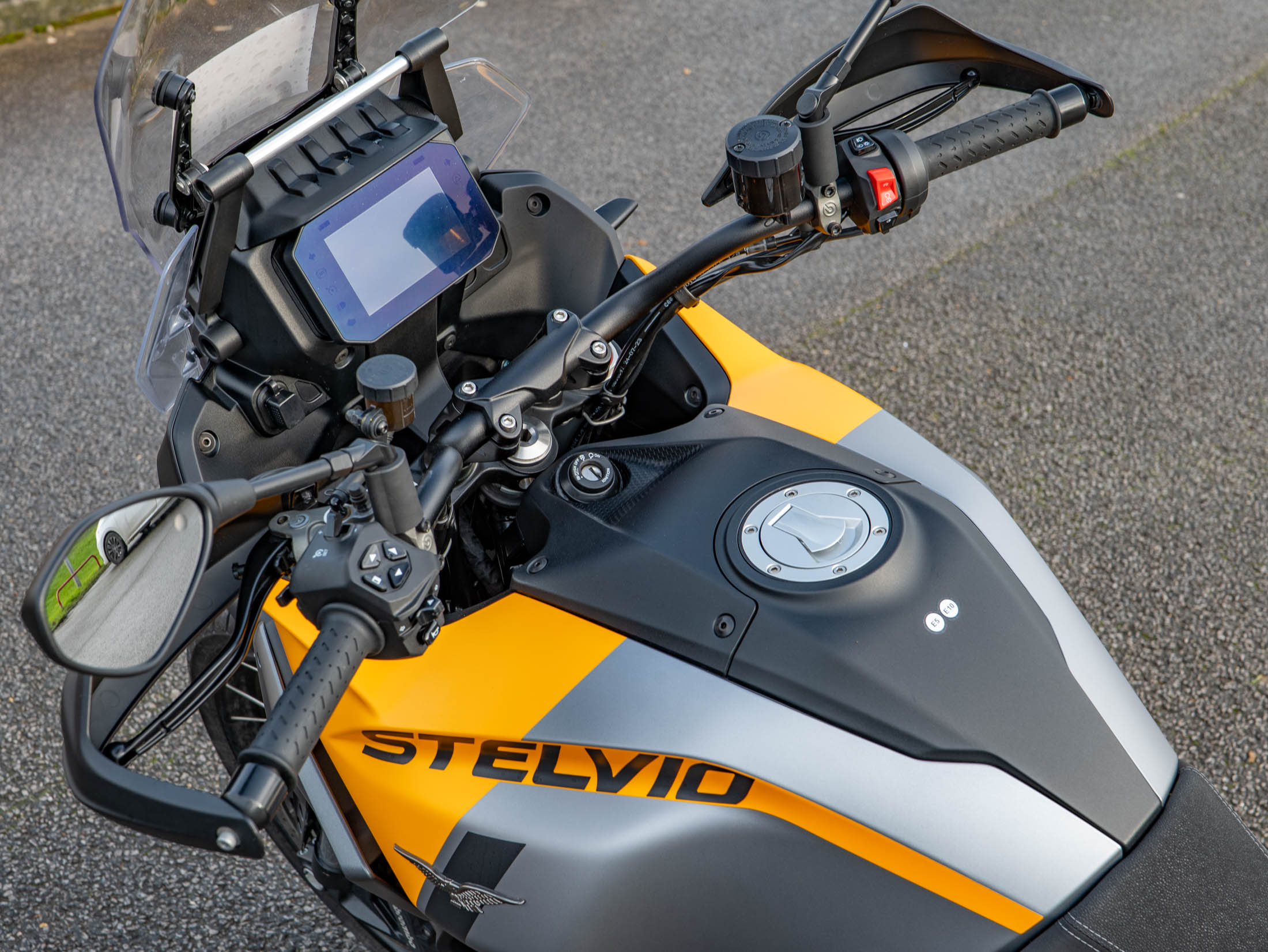 The Stelvio is driven by the innovative 1,042cc liquid-cooled "Compact Block" V-Twin engine, which delivers a powerful 115 hp and strong torque, transmitted via a smooth, low-maintenance Shaft Drive. This machine has been enhanced with the factory-fitted Bi-Directional Quickshifter (DQS) Up/Down, allowing for seamless, clutchless gear changes that dramatically improve the riding experience both on the road and when shifting frequently.