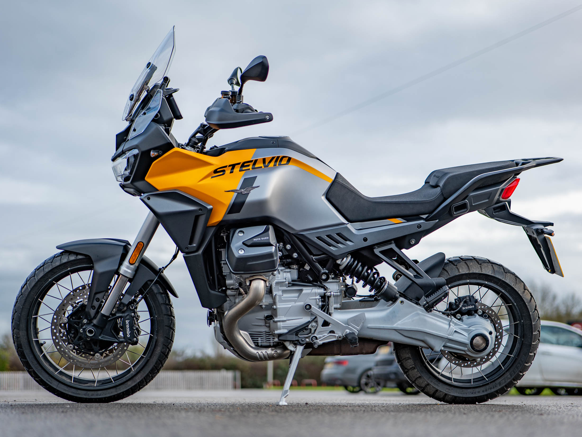 Now available is this superb, nearly-new 2024 Model Year Moto Guzzi Stelvio PFF, the modern adventure tourer featuring the advanced radar safety system and the desirable Quickshifter upgrade. Presented in the striking Giallo Savana (Yellow) livery, this machine has covered just 4,111 genuine miles from new and is in excellent condition. It comes complete with Full Dealer Service History (FDSH) and the vast majority of its full manufacturer's warranty remaining.