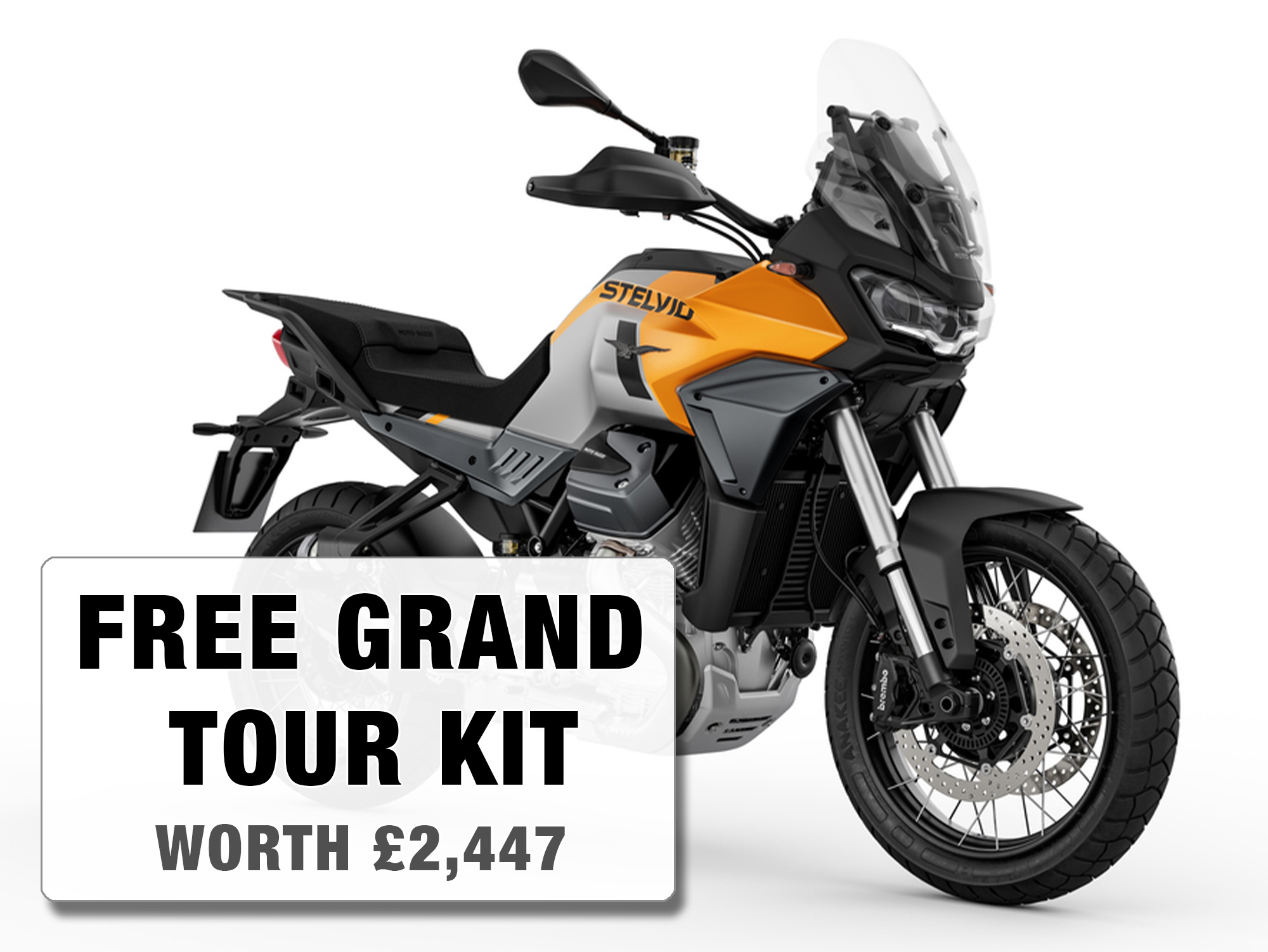 Including a FREE Grand Tour Kit worth £2,447; Topbox with back rest, Panniers, Centre Stand, Top Box Mounting Plate, Engine Protection, Quickshifter and LED Fog Lights.