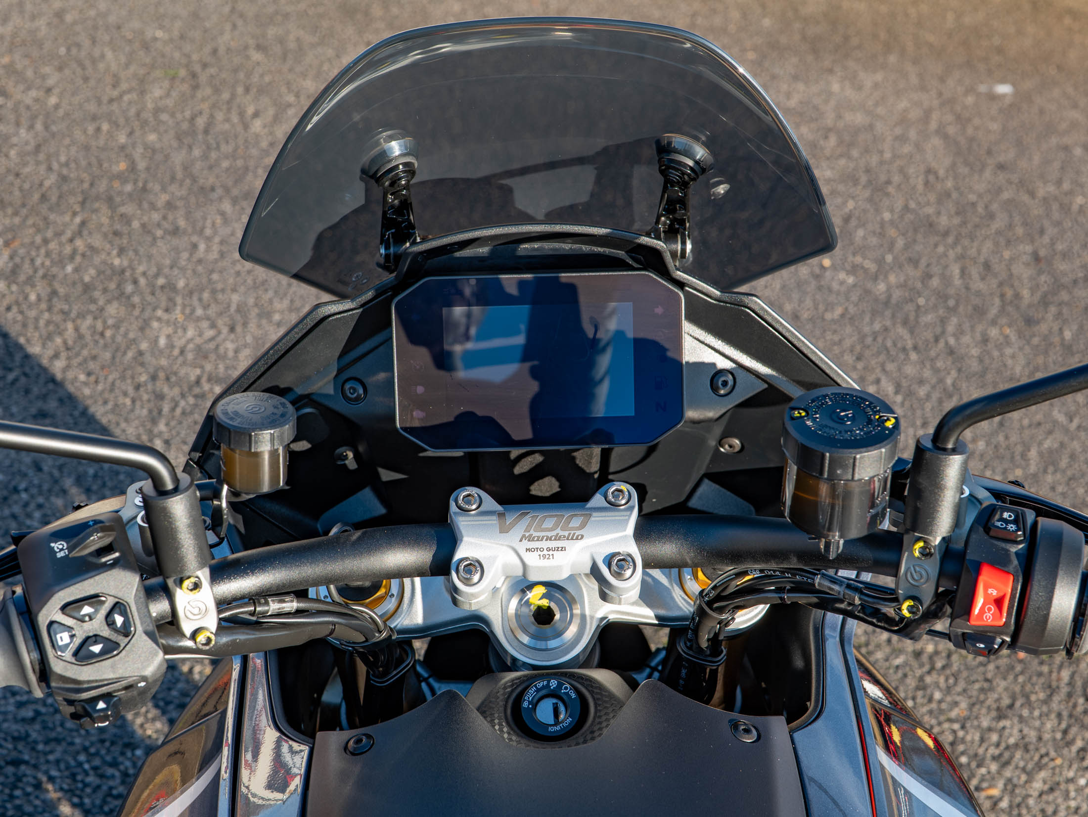 As the premium "S" specification, this Mandello is equipped with the top-tier Öhlins Smart EC 2.0 semi-active suspension, which constantly adjusts to the road surface for a perfect balance of sport and touring comfort. This model is further enhanced for long-distance versatility with factory-fitted Heated Grips, a Quickshifter for seamless gear changes, and a practical Centre Stand. Whether you are navigating tight Alpine passes or cruising on the motorway, the combination of a shaft drive, Brembo brakes, and a comprehensive electronics suite makes the V100 Mandello S a sophisticated and effortless companion.