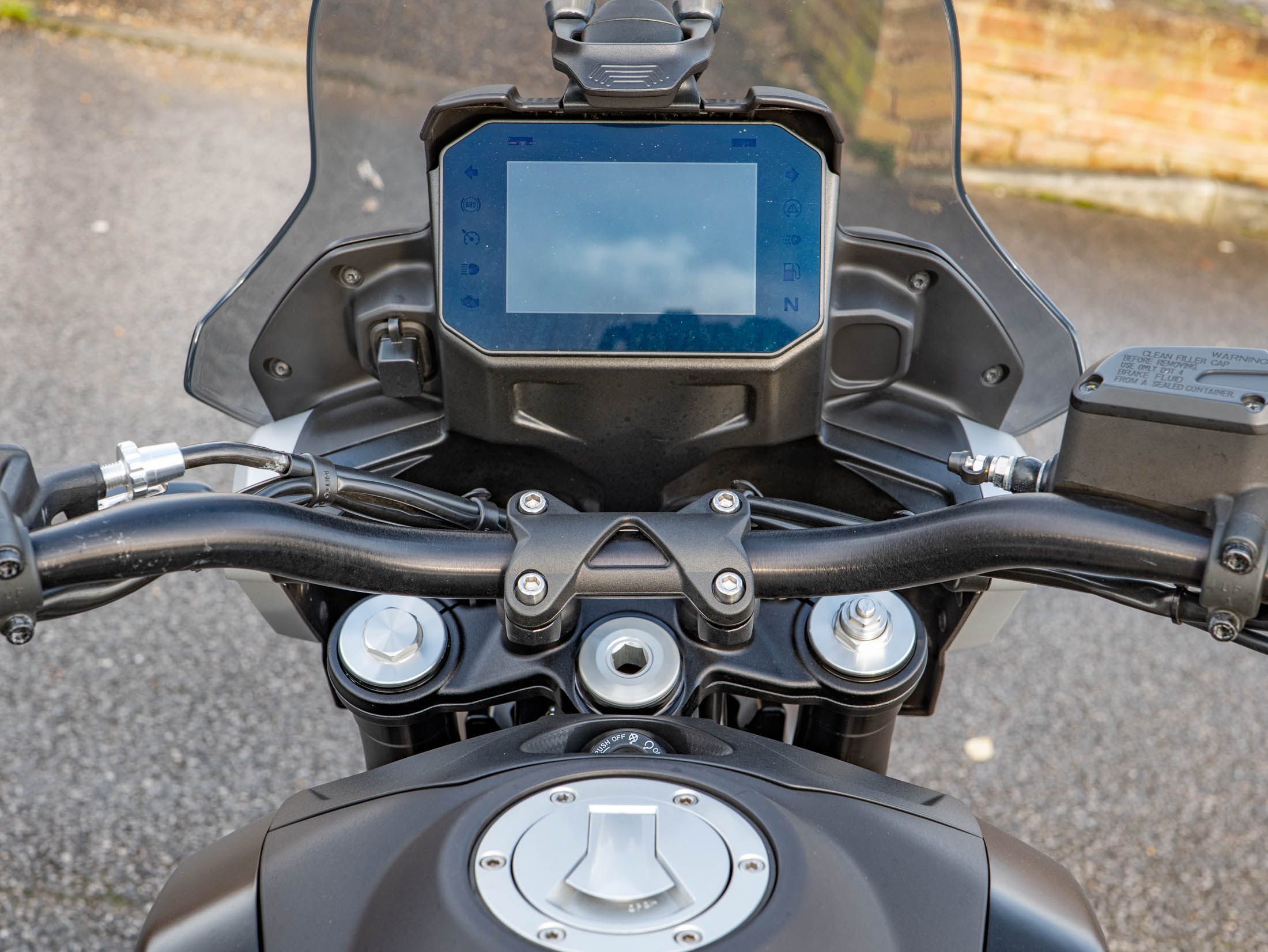 The Strada is designed for the road. Unlike the TT models, it features lightweight cast aluminium wheels with road-tread tyres, which significantly sharpen the bike's agility and responsiveness on asphalt. Safety and performance are managed by the electronic suite, which includes multi-level Traction Control (ATC) and three dedicated Riding Modes (Road, Sport, and Rain) to instantly optimise power delivery and safety settings. Cruise Control is included as standard for comfortable long-distance riding, and a practical USB Socket ensures your devices stay charged. The unique styling, low mudguard, and lack of a rear luggage rack underscore its practical, unladen aesthetic.