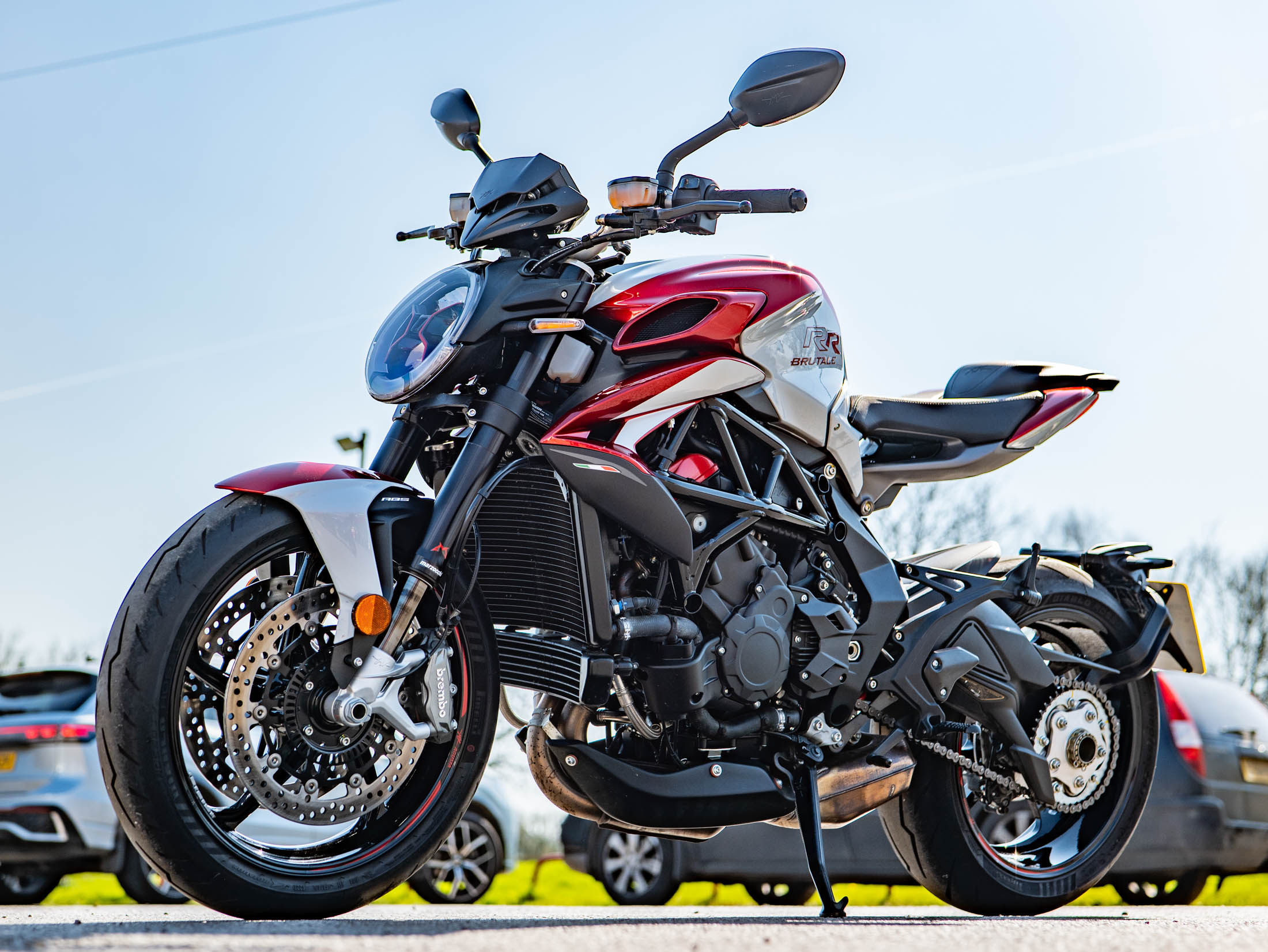 Features an exhilarating triple-cylinder soundtrack, 140 hp, 1 owner, and a full service history. This stunning 2023 MV Agusta Brutale 800 RR is now available at On Yer Bike near Aylesbury, finished in a striking deep Metallic Red and Silver that perfectly complements its aggressive, minimalist Italian design. Having covered just 690 miles from new, this machine is presented in very good condition and offers a rare opportunity to own one of the most exotic and desirable naked bikes on the market today.