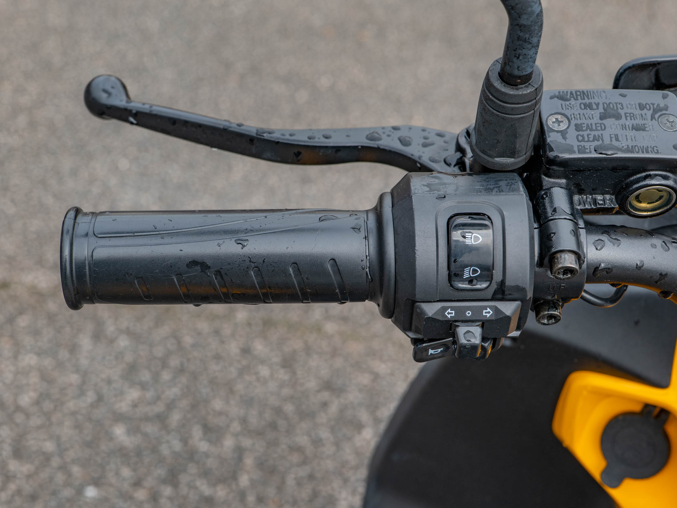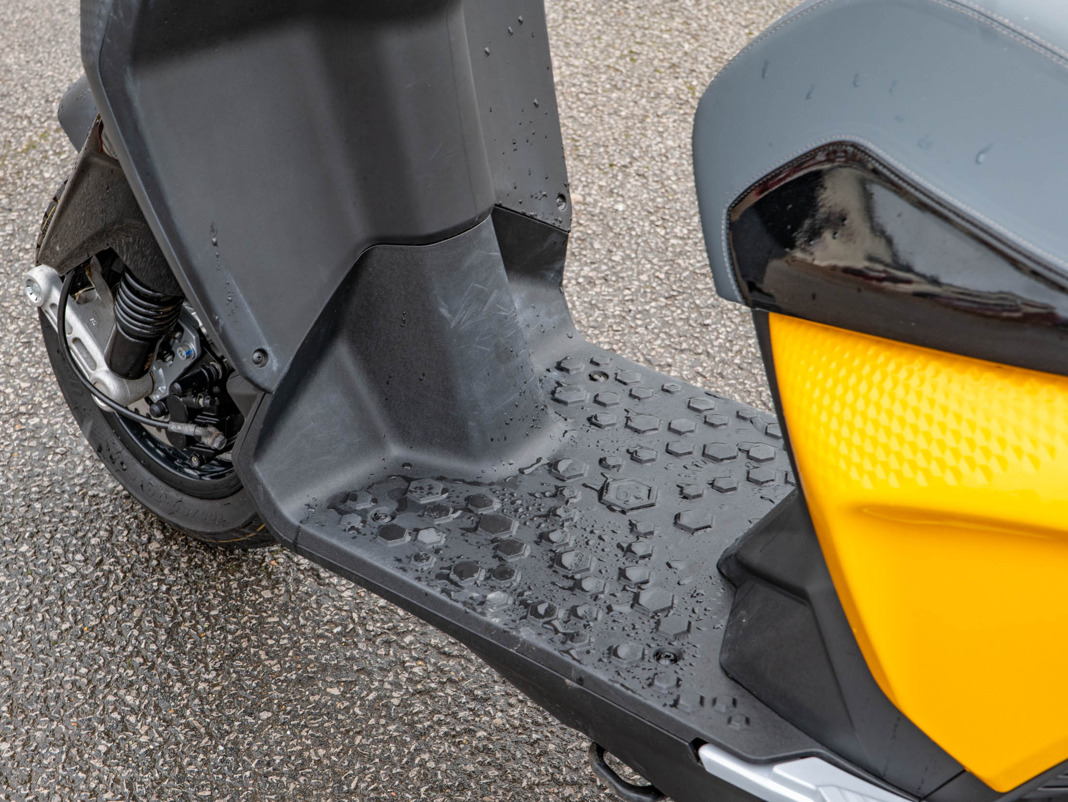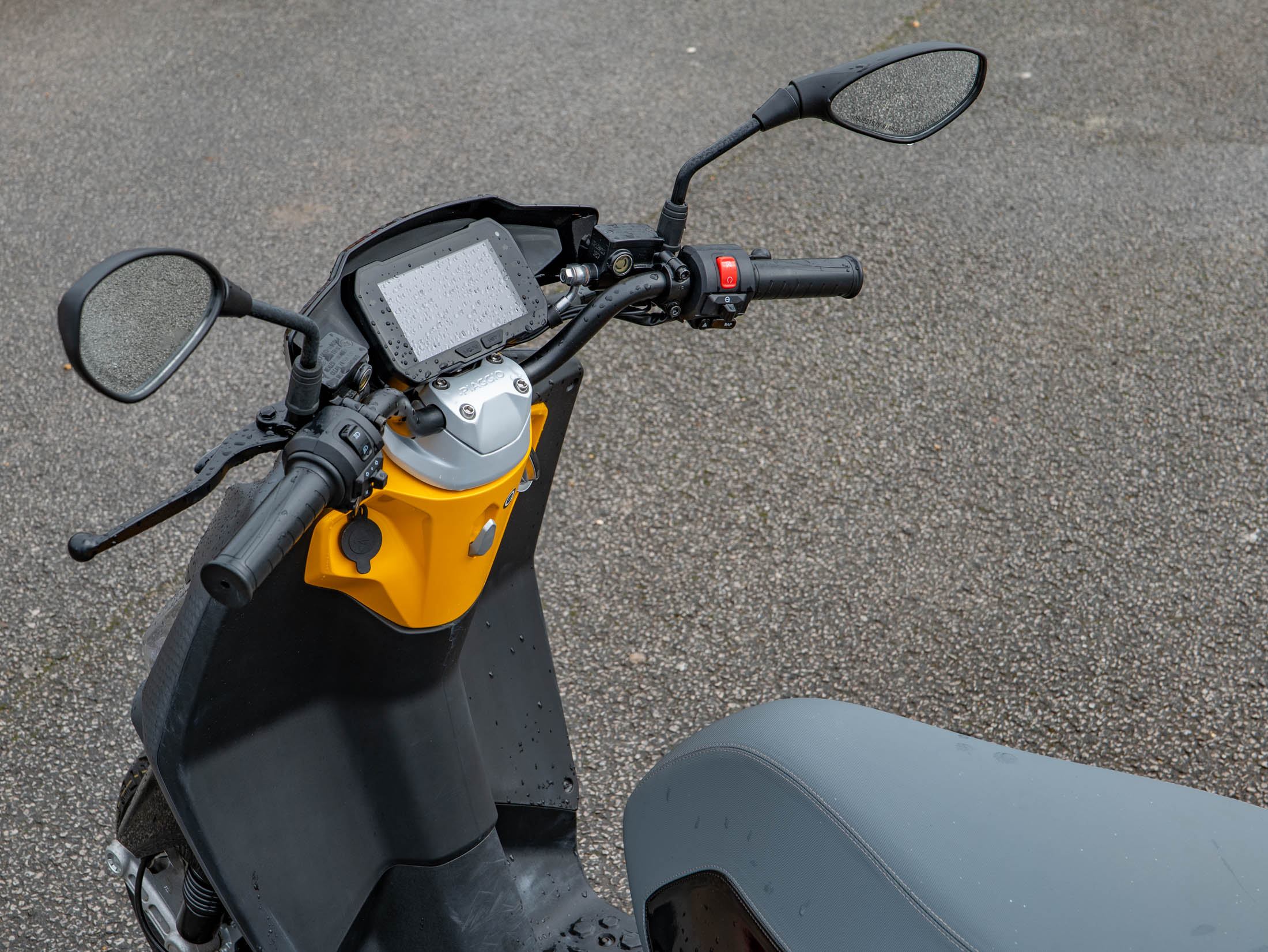 Riding the Piaggio 1 is an incredibly intuitive experience that makes navigating city traffic effortless. The hub-mounted electric motor provides smooth, linear acceleration that is completely silent and vibration-free, making it far more refined than a standard 50cc petrol equivalent. It features two distinct riding maps to suit your journey: ECO mode for maximum efficiency and Sport mode for full performance. The lightweight chassis and low seat height make it remarkably agile, allowing you to filter through congestion and manoeuvre into tight parking spots with ease.