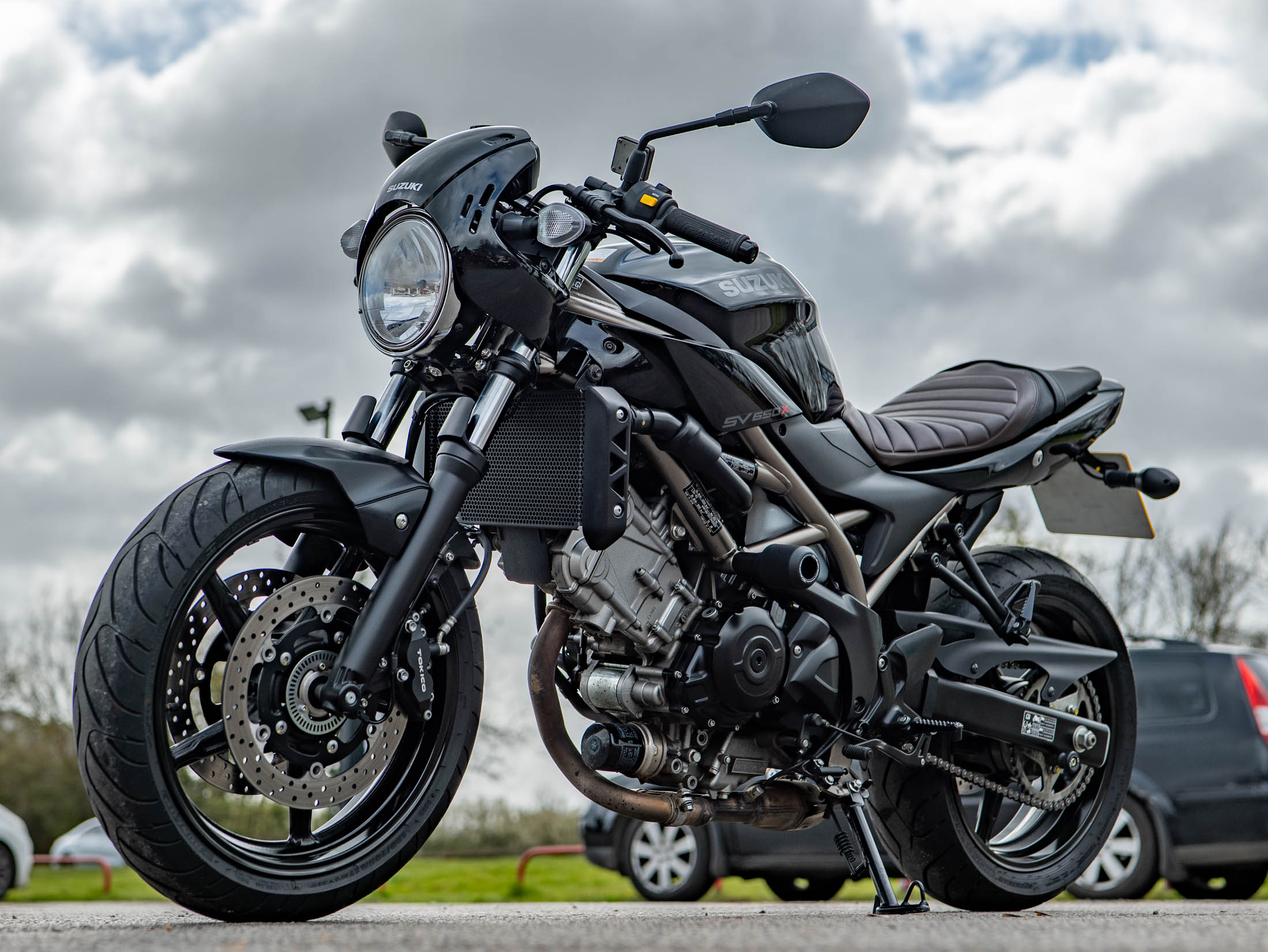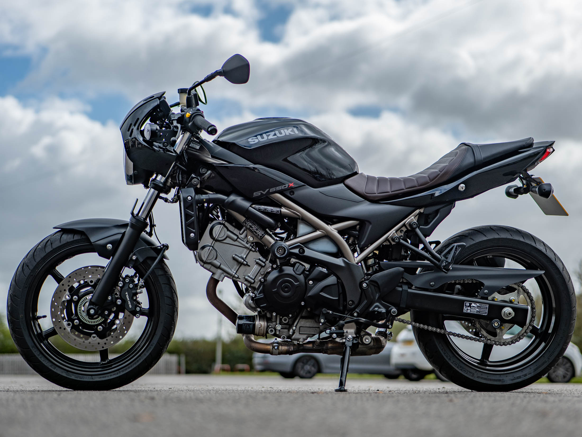 The 2021 Suzuki SV 650 X has arrived at On Yer Bike near Aylesbury, presented in a stealthy Metallic Glass Black. This immaculate, retro-styled machine has covered just 3,922 miles from new and is in very good condition. As the "X" variant of the legendary SV 650 platform, this motorcycle blends modern reliability with a timeless café racer aesthetic, featuring a distinctive headlight cowl and a lower, more engaged riding position.