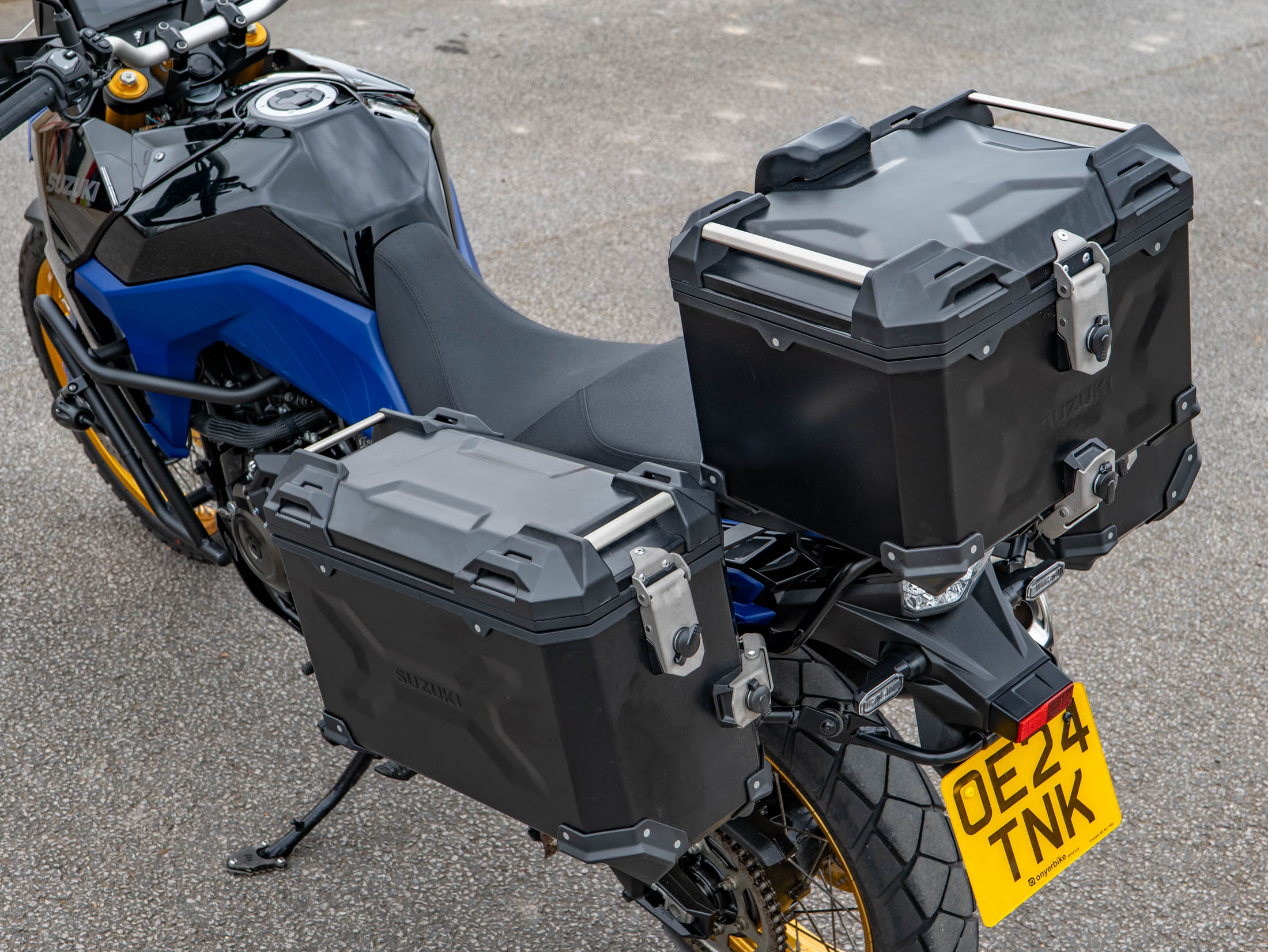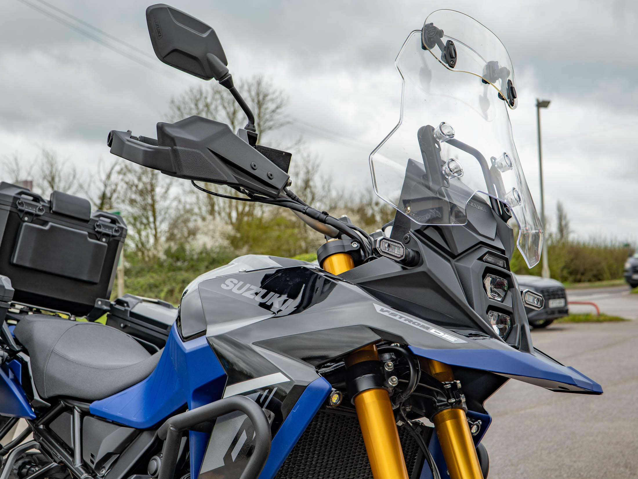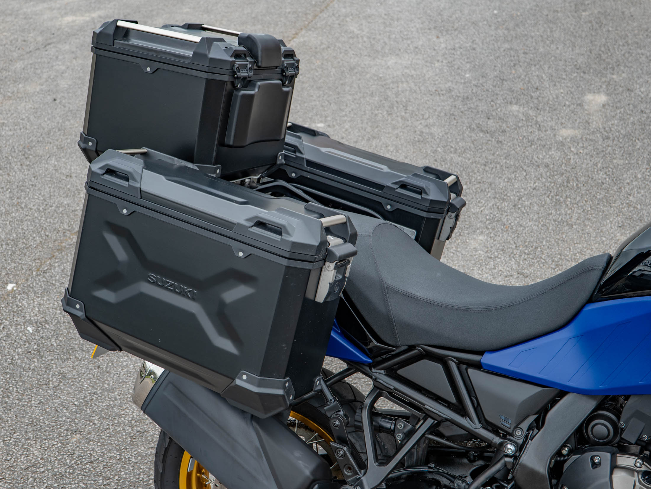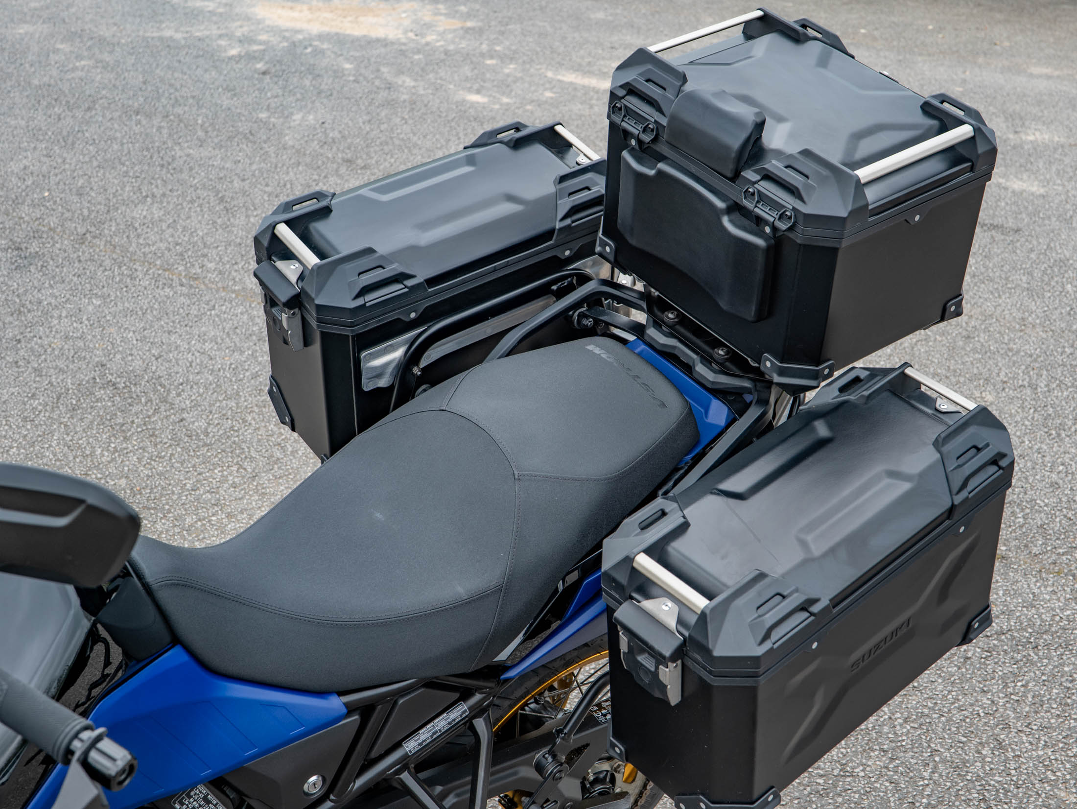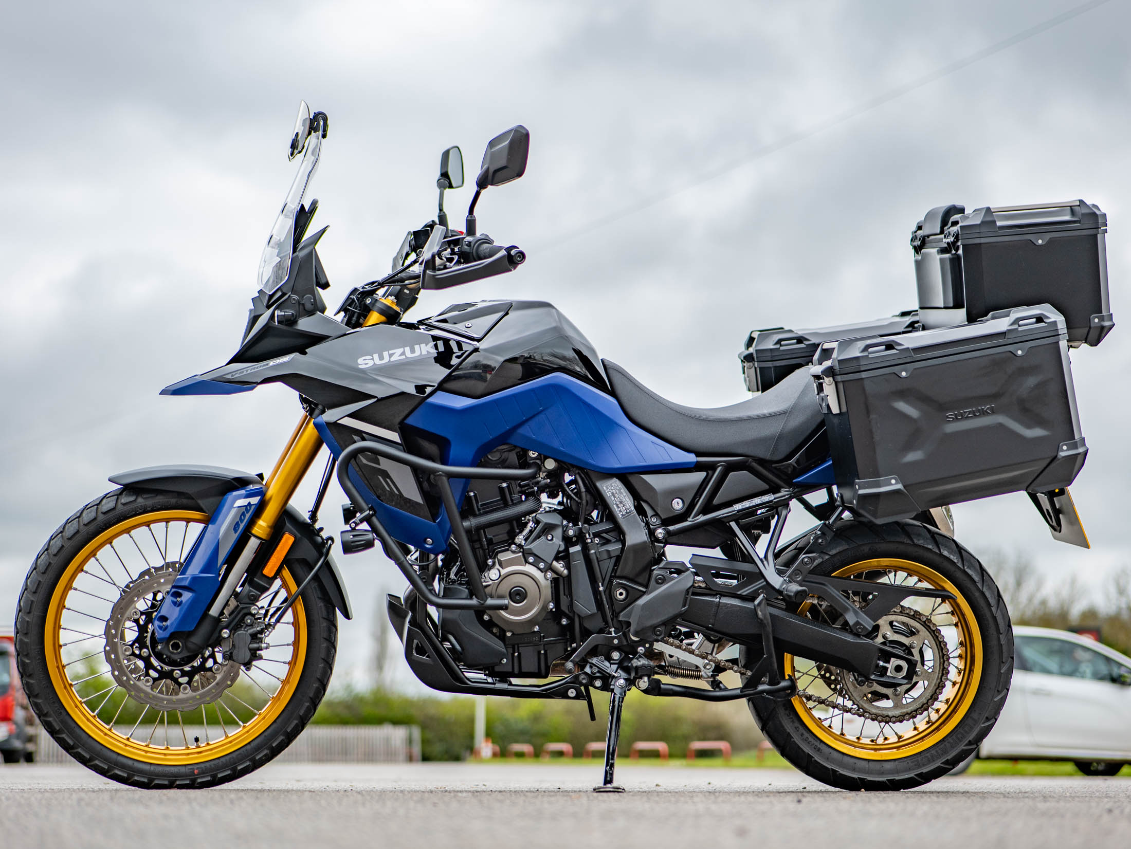 This particular 84 hp Tour model leaves nothing to be desired in terms of specification. It comes protected by robust engine crash bars and features auxiliary LED spotlights for maximum visibility. For long-distance comfort, it is equipped with a genuine Suzuki tall touring screen, heated grips, and cruise control. The three-piece aluminium luggage system provides ample secure storage, while the addition of a centre stand makes roadside maintenance simple. With Suzuki’s Intelligent Ride System (S.I.R.S) providing a bi-directional quickshifter and dedicated "Gravel" traction control, this 84 hp V-Strom is the definitive all-road companion.