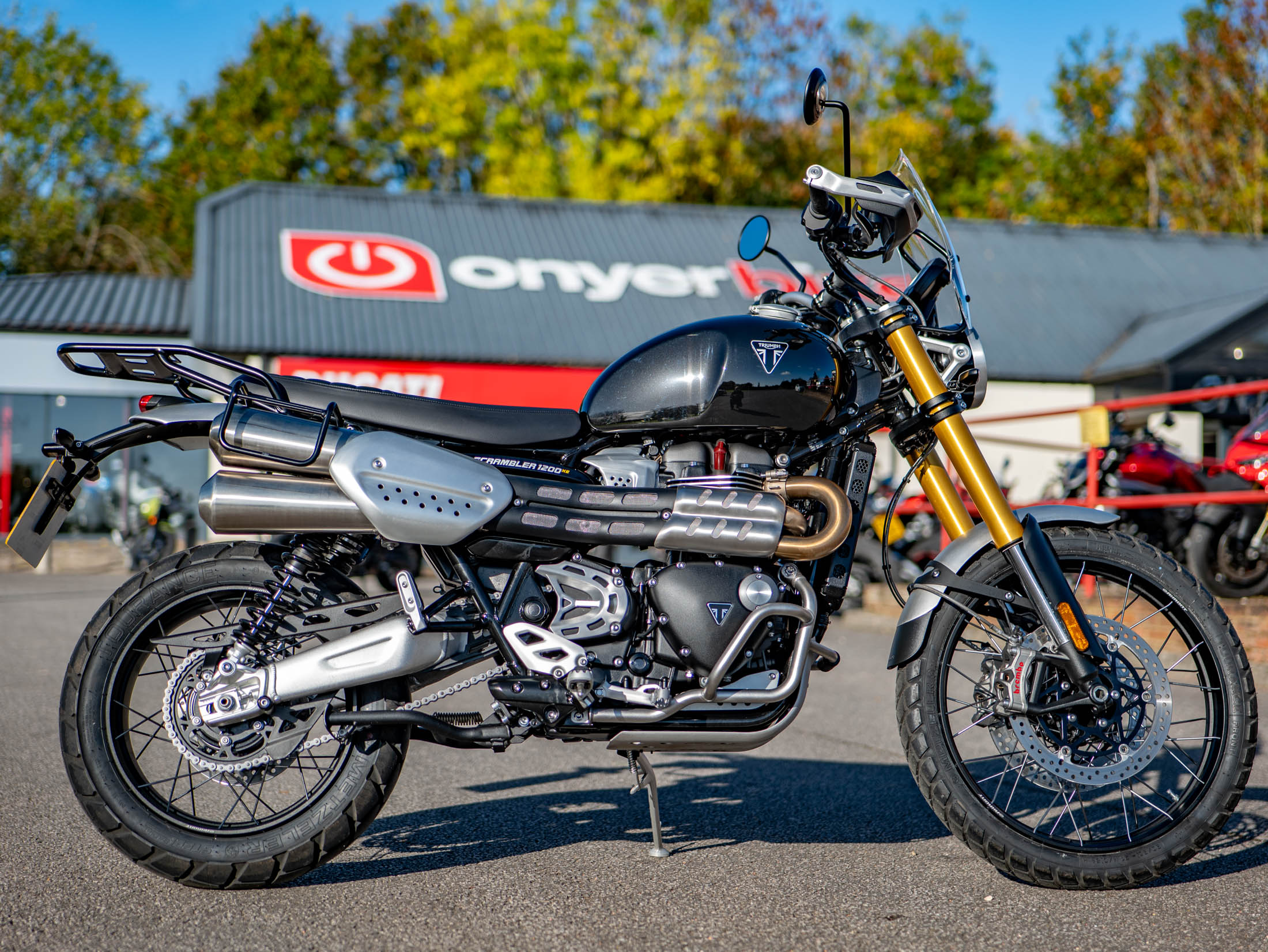 For sale at On Yer Bike, near Aylesbury, UK, is this truly exceptional, ultra-low-mileage Triumph Scrambler 1200 XE. This stunning Black 2024 '74 Reg motorcycle has covered just 318 miles since new, presenting a rare opportunity to own a virtually unused example of the definitive adventure-ready modern classic. The Scrambler 1200 XE is engineered to deliver class-leading capability across any terrain, blending the iconic heritage of Triumph's Bonneville line with a high-specification chassis and the latest rider technology. Its striking appearance is matched by its performance, making every ride, from the daily commute to extreme off-road adventures, an exhilarating experience.