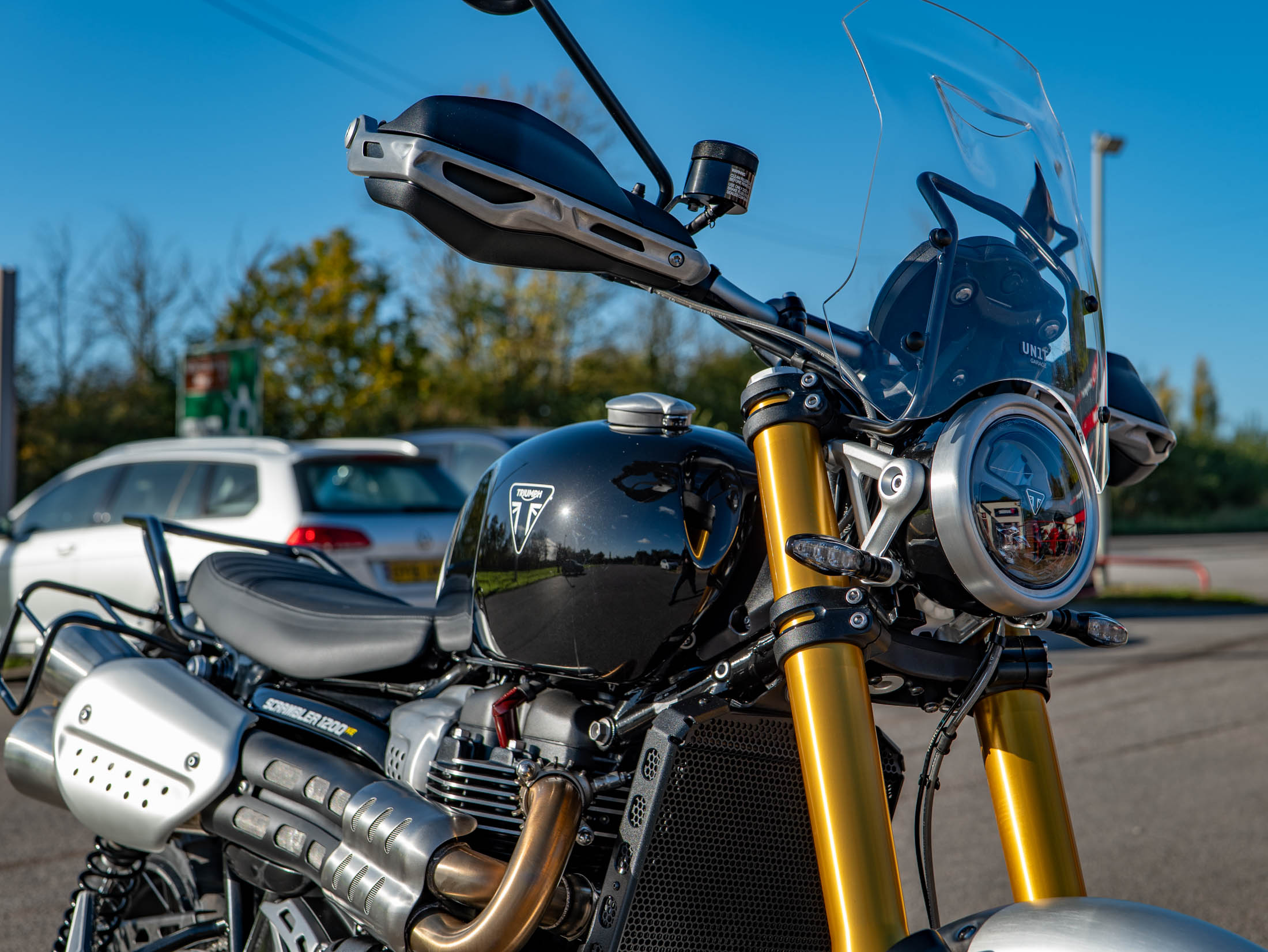 This specific Scrambler 1200 XE has been meticulously maintained and thoughtfully enhanced with a number of genuine accessories to improve its functionality and protection for the next owner. It comes with a Full Service History (FSH), with its most recent service completed in September 2025, confirming it is fully prepared for its next adventure. Practical touring upgrades include both a dedicated Soft Pannier Rack and a Rear Rack for carrying luggage, alongside an UN1T Screen to offer superior wind protection on longer motorway stints. Essential protection is provided by Engine Bars and an Evotech Radiator Guard, ensuring the vital components are shielded for more rugged use.