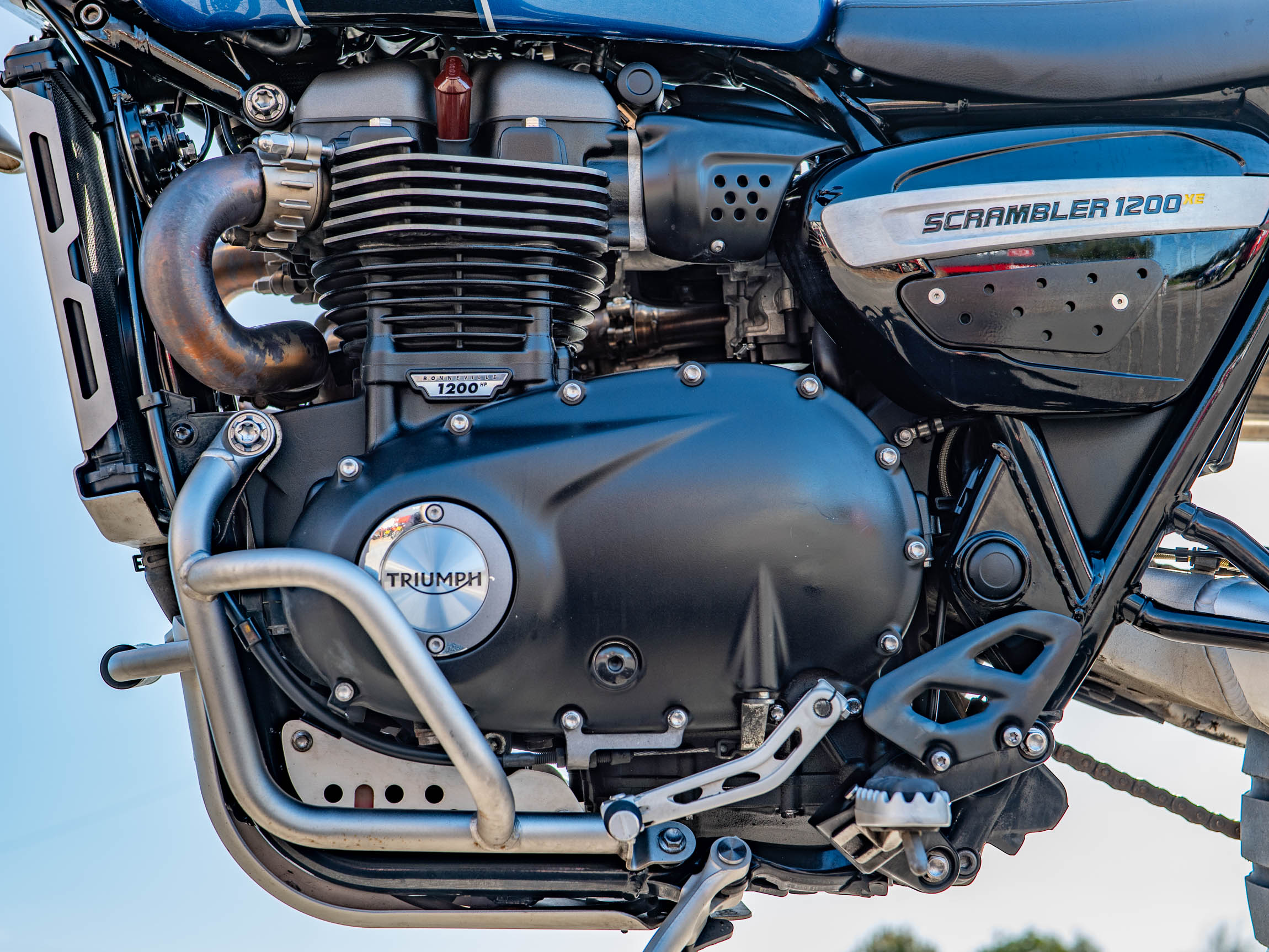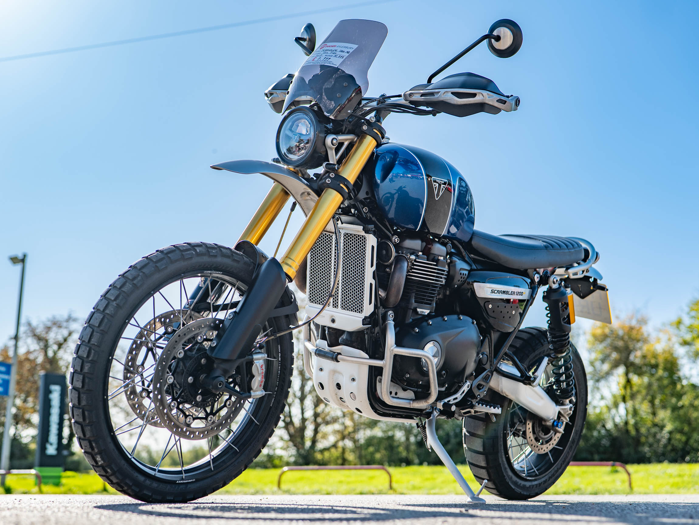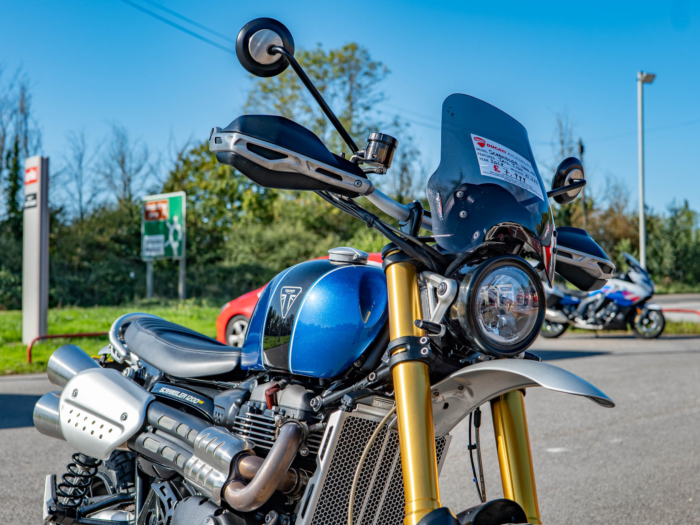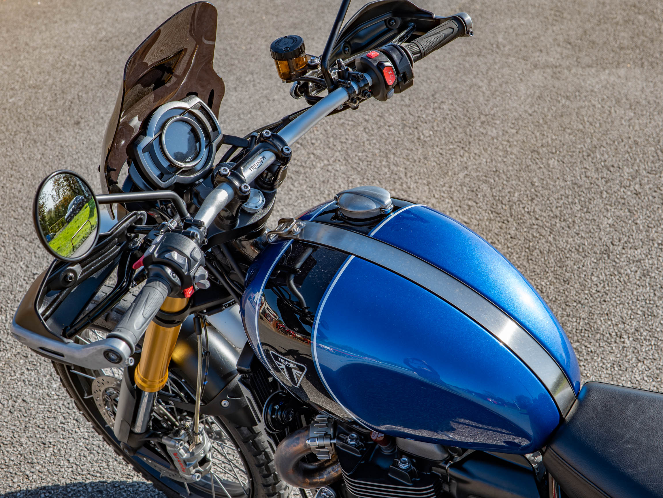 This is an exceptional 2019 Triumph Scrambler 1200 XE with 11,000 miles on the clock. The "XE" is the highest-specification model, built for serious off-road capability while still being a fantastic road bike. Its top-end components include long-travel Öhlins suspension and Brembo M50 monobloc... READ MORE