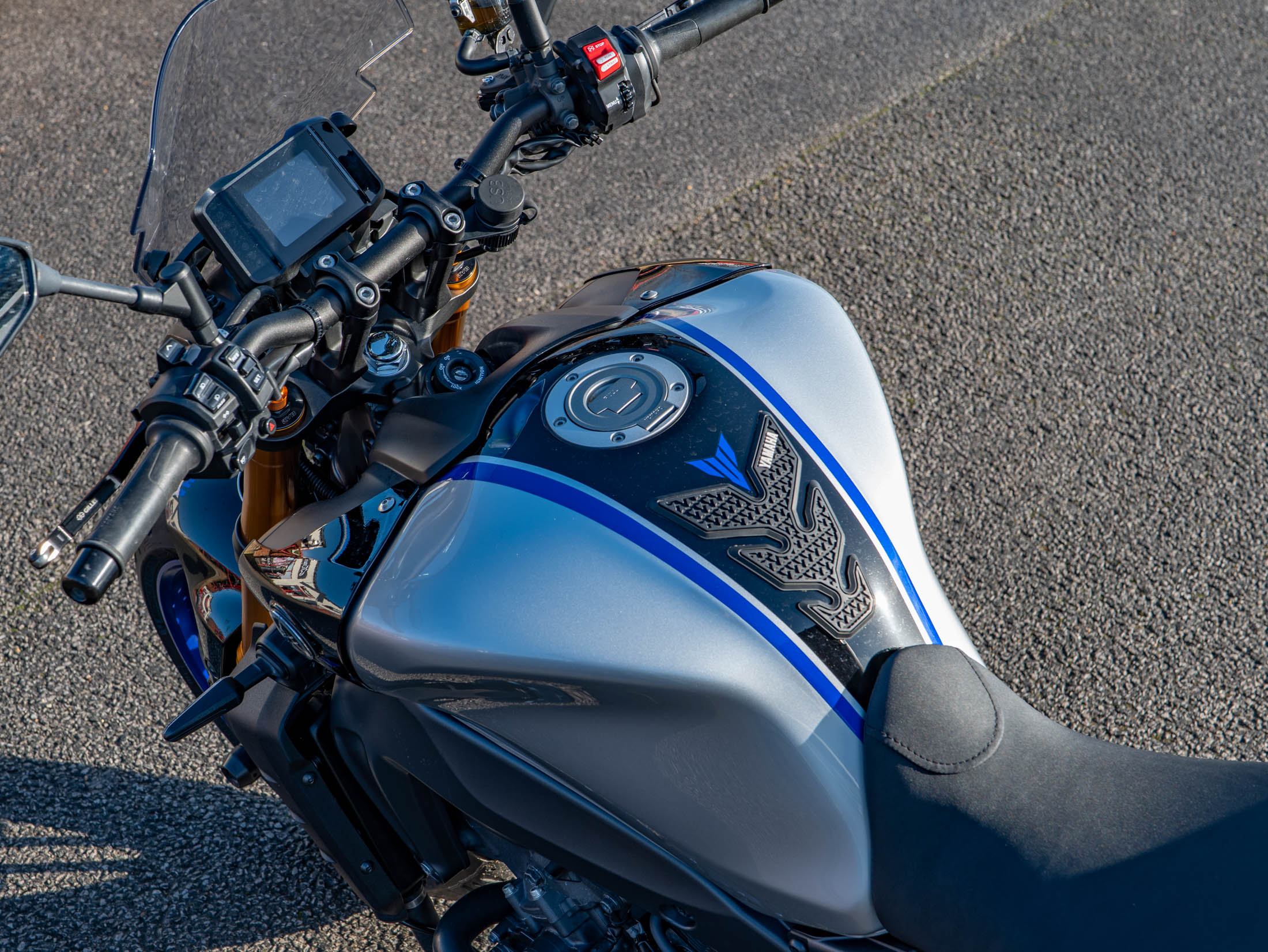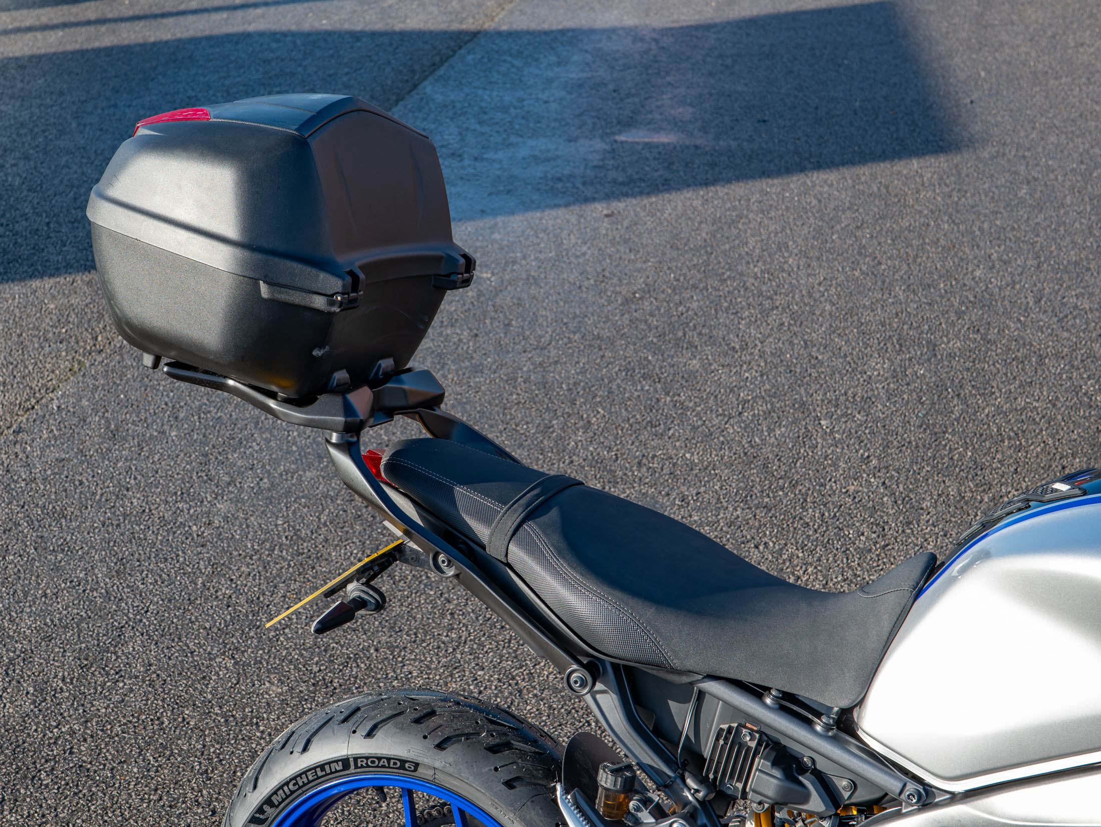 This particular example has been thoughtfully equipped for both daily practicality and weekend touring. It features a genuine Yamaha top box and rear rack, providing significant storage capacity for commuting or trips away. For all-weather comfort, the bike is fitted with heated grips and a subtle fly screen to deflect wind at higher speeds. Protection has been a priority for the previous owner, with radiator guards, spindle sliders, and paddock stand bobbins already installed. The rear profile has been sharpened with a tail tidy, and a tank pad protects the premium silver paintwork. These additions make this one of the most versatile and well-protected SP models on the market.