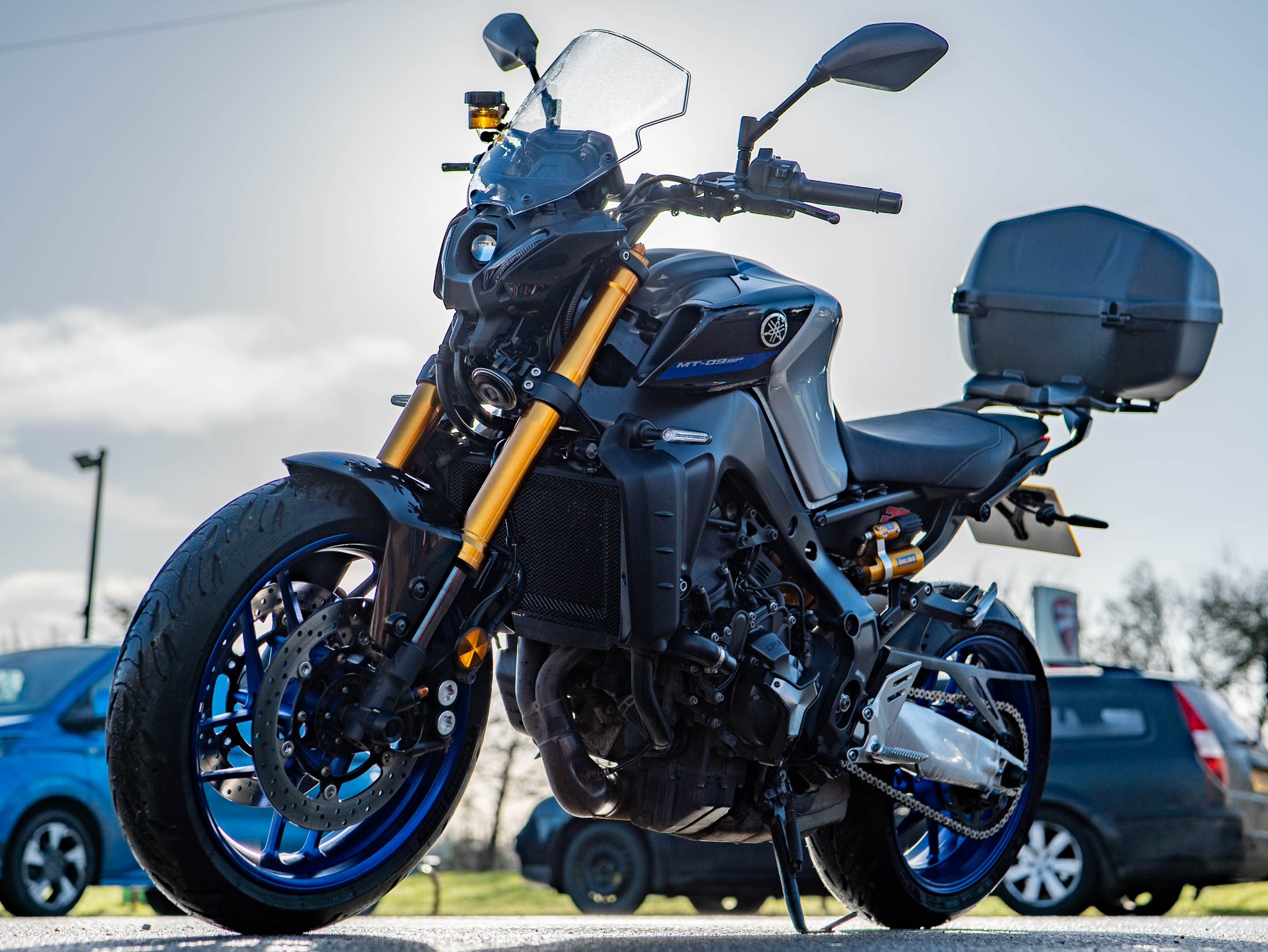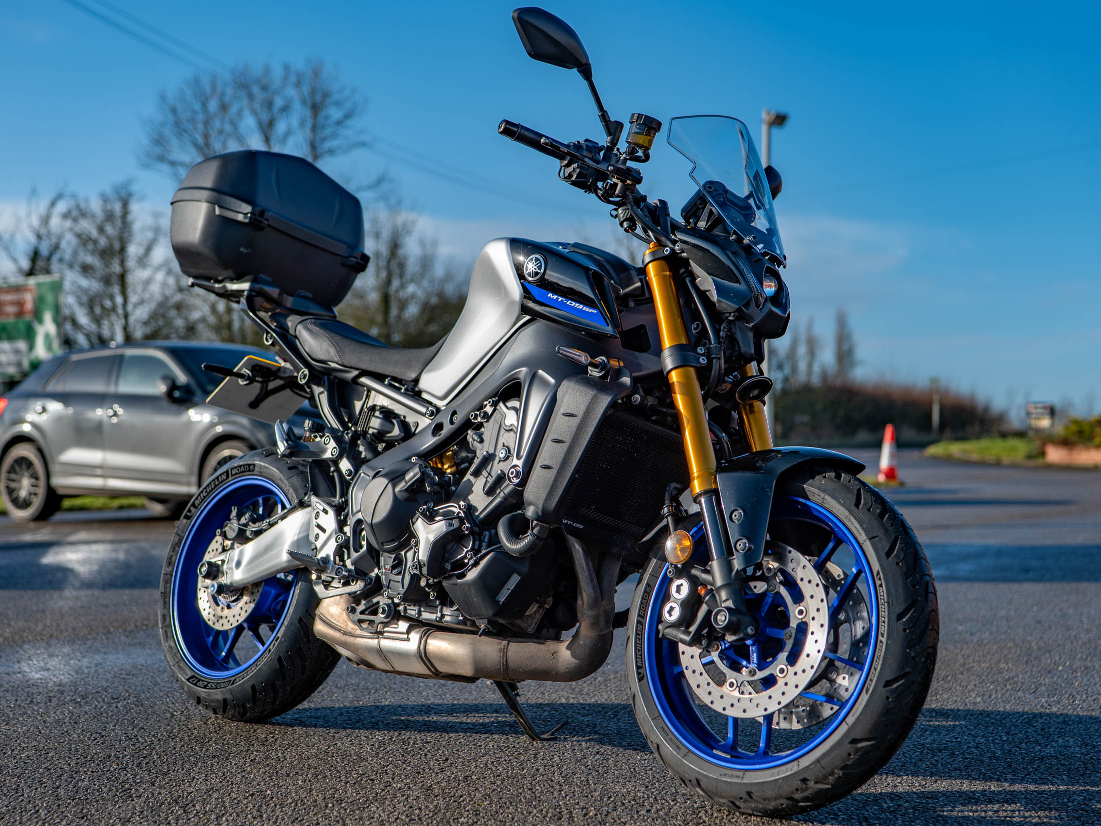 Riding the MT-09 SP is a thrilling and precise experience, largely thanks to the acclaimed 890cc CP3 crossplane triple engine. Producing a punchy 117 hp, the engine offers a broad spread of torque and a distinctive, howling soundtrack that is addictive through the rev range. What sets the SP apart is the world-class suspension, featuring fully adjustable gold KYB forks and an Ohlins rear shock with a remote preload adjuster. This setup provides incredible chassis composure and feedback, allowing you to exploit the lightweight chassis with total confidence. The bidirectional quickshifter ensures seamless gear changes, making every ride feel sharp and intentional.