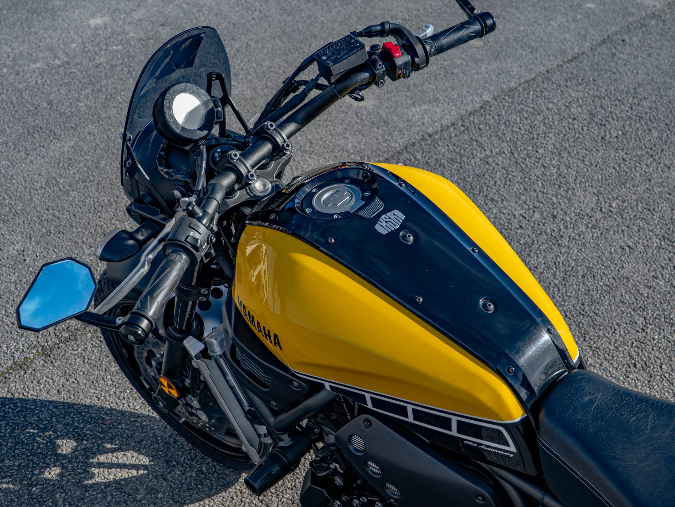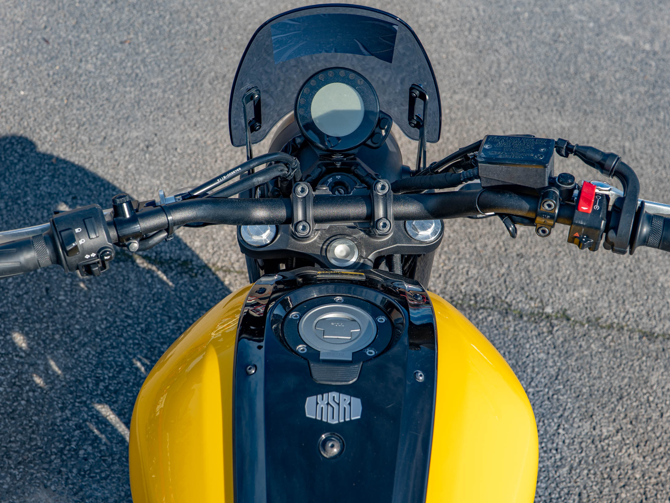 The XSR700 is more than just a styling exercise; its lightweight steel backbone frame and short wheelbase make it one of the most agile and user-friendly bikes in the middleweight category. With a wet weight of just 186kg, this 74 hp roadster offers effortless handling whether you're carving through B-road corners or navigating city traffic. The upright riding position and wide handlebars provide excellent control and comfort, while the retro-inspired details—like the round LCD clock, aluminium fuel tank covers, and perforated metal accents—give it a timeless, custom feel.